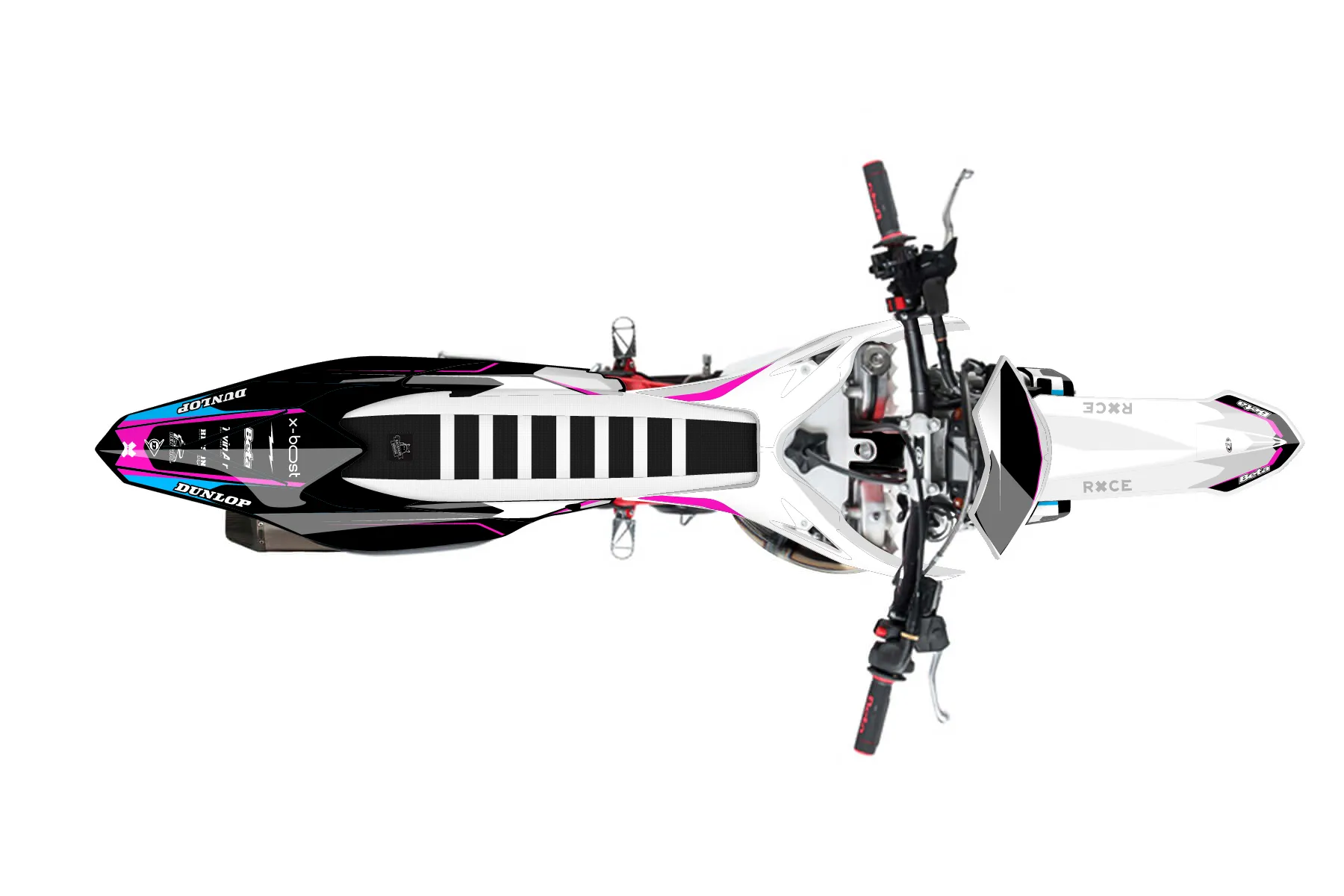 «Pattern» — готовый комплект графики серии Flow для Beta Enduro Graphic Kit Beta RR 250 2019. В комплекте: графика на бак и боковые облицовки, крылья (переднее и заднее), передний щиток, номерные таблички, защита вилки. Материал: ПВХ-винил 80 мкр с холодной ламинацией 300 мкр, общая толщина 380 мкр; покрытие глянцевое или матовое на выбор. Устойчив к UV-излучению, воде, бензину и мойке высокого давления. Клей акриловый на сольвентной основе — постоянный, для гибких пластиков. На простых поверхностях монтируется без нагрева; для сложных изгибов рекомендуем фен. Этот пресет можно заказать как есть или взять за основу в конструкторе: поменять цвета, добавить стартовый номер и свой бренд. Производство — 3–5 рабочих дней, доставка по России СДЭКом или Почтой, по СНГ — курьерскими службами.