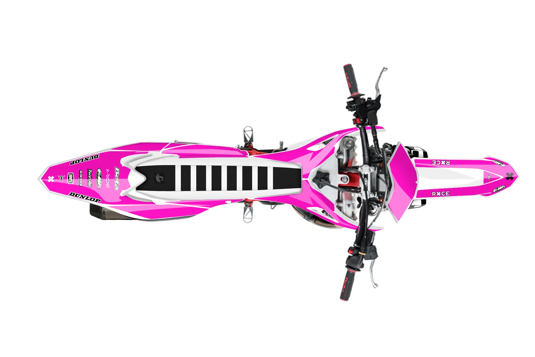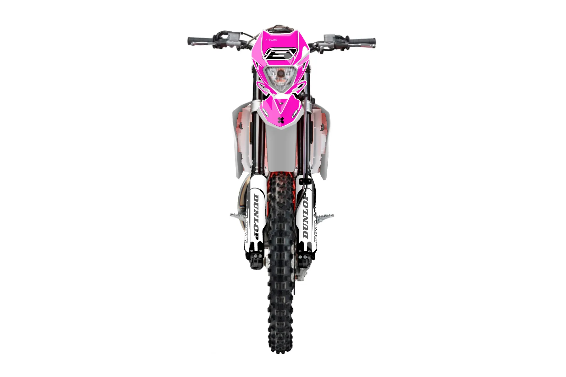 «pepto-bismol» — готовый комплект графики серии Flow для Beta Enduro Graphic Kit Beta RR 250 2022. В комплекте: графика на бак и боковые облицовки, крылья (переднее и заднее), передний щиток, номерные таблички, защита вилки. Материал: ПВХ-винил 80 мкр с холодной ламинацией 300 мкр, общая толщина 380 мкр; покрытие глянцевое или матовое на выбор. Устойчив к UV-излучению, воде, бензину и мойке высокого давления. Клей акриловый на сольвентной основе — постоянный, для гибких пластиков. На простых поверхностях монтируется без нагрева; для сложных изгибов рекомендуем фен. Этот пресет можно заказать как есть или взять за основу в конструкторе: поменять цвета, добавить стартовый номер и свой бренд. Производство — 3–5 рабочих дней, доставка по России СДЭКом или Почтой, по СНГ — курьерскими службами.