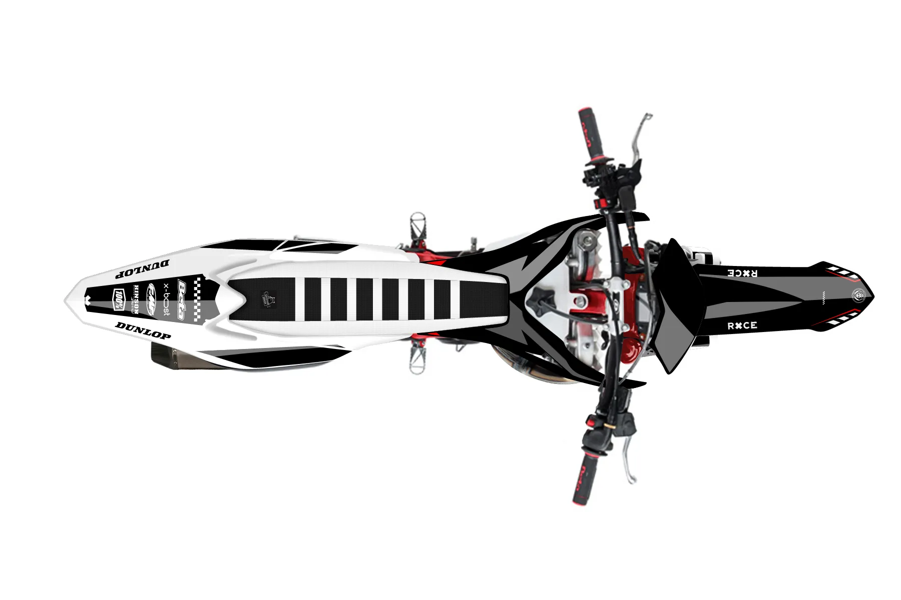 «Dude» — готовый комплект графики серии Maverick для Beta Enduro Graphic Kit Beta RR 250 2022. В комплекте: графика на бак и боковые облицовки, крылья (переднее и заднее), передний щиток, номерные таблички, защита вилки. Материал: ПВХ-винил 80 мкр с холодной ламинацией 300 мкр, общая толщина 380 мкр; покрытие глянцевое или матовое на выбор. Устойчив к UV-излучению, воде, бензину и мойке высокого давления. Клей акриловый на сольвентной основе — постоянный, для гибких пластиков. На простых поверхностях монтируется без нагрева; для сложных изгибов рекомендуем фен. Этот пресет можно заказать как есть или взять за основу в конструкторе: поменять цвета, добавить стартовый номер и свой бренд. Производство — 3–5 рабочих дней, доставка по России СДЭКом или Почтой, по СНГ — курьерскими службами.