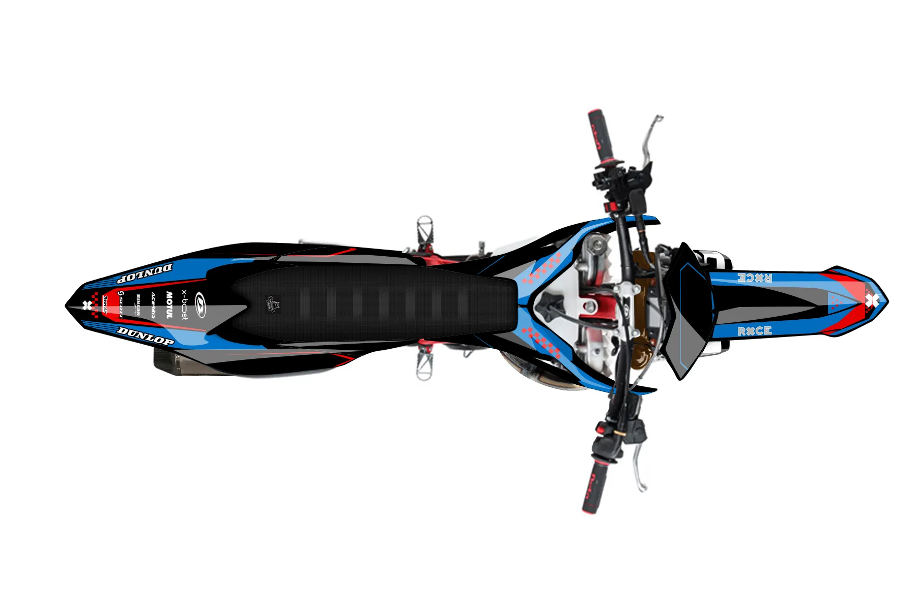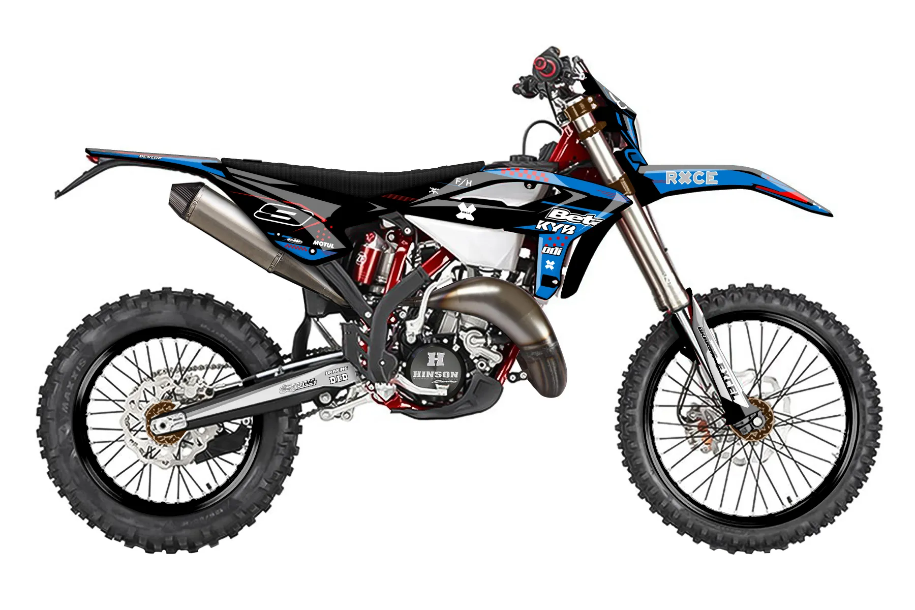 «Red Black Blue Beta» — готовый комплект графики серии Staple для Beta Enduro Graphic Kit Beta RR 250 2022. В комплекте: графика на бак и боковые облицовки, крылья (переднее и заднее), передний щиток, номерные таблички, защита вилки. Материал: ПВХ-винил 80 мкр с холодной ламинацией 300 мкр, общая толщина 380 мкр; покрытие глянцевое или матовое на выбор. Устойчив к UV-излучению, воде, бензину и мойке высокого давления. Клей акриловый на сольвентной основе — постоянный, для гибких пластиков. На простых поверхностях монтируется без нагрева; для сложных изгибов рекомендуем фен. Этот пресет можно заказать как есть или взять за основу в конструкторе: поменять цвета, добавить стартовый номер и свой бренд. Производство — 3–5 рабочих дней, доставка по России СДЭКом или Почтой, по СНГ — курьерскими службами.