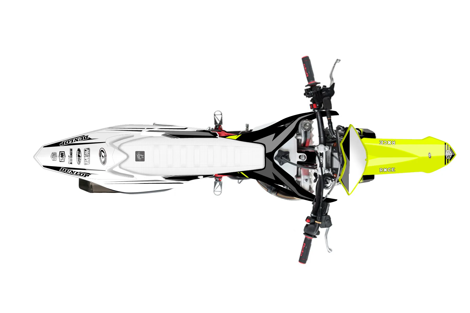 «Industry» — готовый комплект графики серии Untucked для Beta Enduro Graphic Kit Beta RR 250 2022. В комплекте: графика на бак и боковые облицовки, крылья (переднее и заднее), передний щиток, номерные таблички, защита вилки. Материал: ПВХ-винил 80 мкр с холодной ламинацией 300 мкр, общая толщина 380 мкр; покрытие глянцевое или матовое на выбор. Устойчив к UV-излучению, воде, бензину и мойке высокого давления. Клей акриловый на сольвентной основе — постоянный, для гибких пластиков. На простых поверхностях монтируется без нагрева; для сложных изгибов рекомендуем фен. Этот пресет можно заказать как есть или взять за основу в конструкторе: поменять цвета, добавить стартовый номер и свой бренд. Производство — 3–5 рабочих дней, доставка по России СДЭКом или Почтой, по СНГ — курьерскими службами.