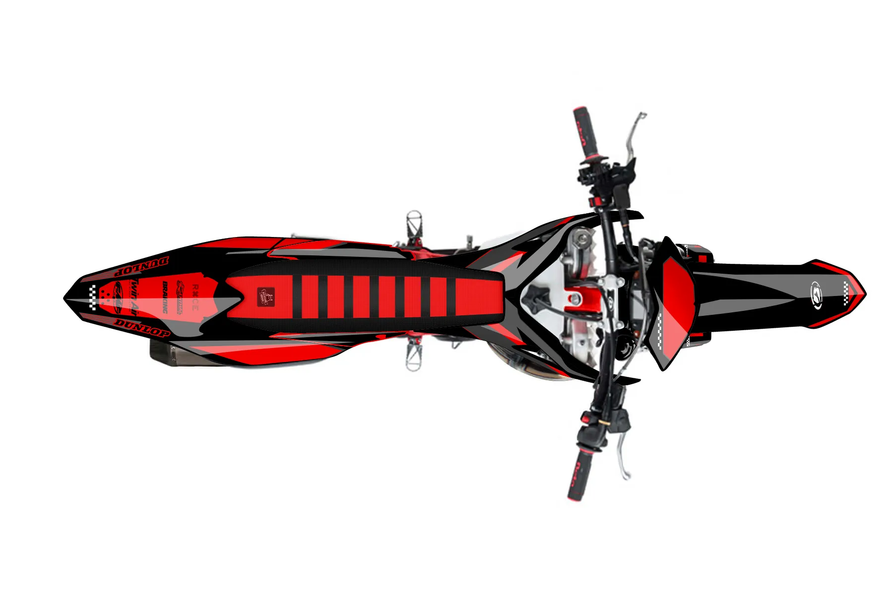 «CustomDesign RR250» — готовый комплект графики серии Staple для Beta Enduro Graphic Kit Beta RR 250 2023. В комплекте: графика на бак и боковые облицовки, крылья (переднее и заднее), передний щиток, номерные таблички, защита вилки. Материал: ПВХ-винил 80 мкр с холодной ламинацией 300 мкр, общая толщина 380 мкр; покрытие глянцевое или матовое на выбор. Устойчив к UV-излучению, воде, бензину и мойке высокого давления. Клей акриловый на сольвентной основе — постоянный, для гибких пластиков. На простых поверхностях монтируется без нагрева; для сложных изгибов рекомендуем фен. Этот пресет можно заказать как есть или взять за основу в конструкторе: поменять цвета, добавить стартовый номер и свой бренд. Производство — 3–5 рабочих дней, доставка по России СДЭКом или Почтой, по СНГ — курьерскими службами.