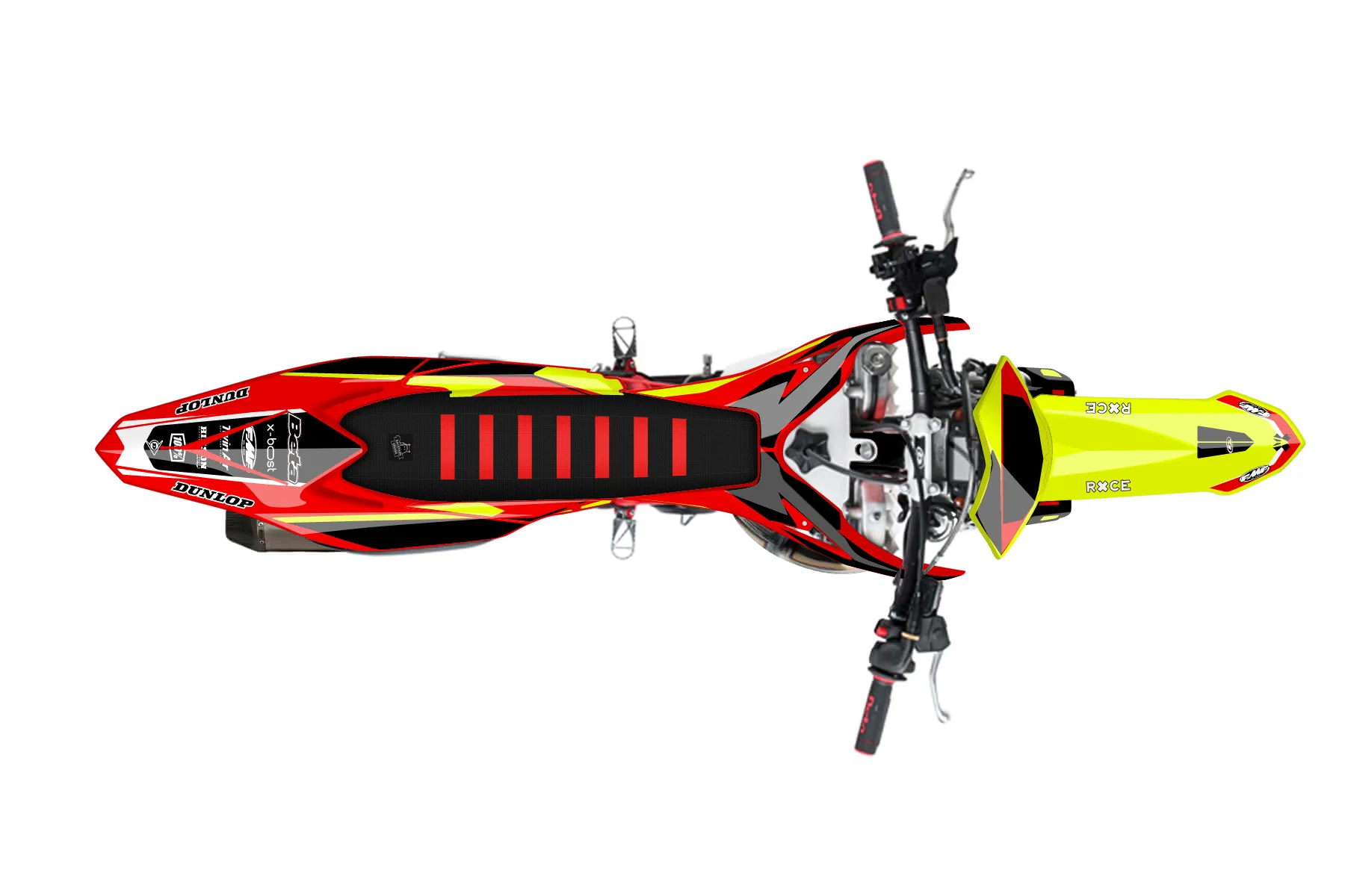 «Brilliant Neon» — готовый комплект графики серии Flow для Beta Enduro Graphic Kit Beta RR 300 2019. В комплекте: графика на бак и боковые облицовки, крылья (переднее и заднее), передний щиток, номерные таблички, защита вилки. Материал: ПВХ-винил 80 мкр с холодной ламинацией 300 мкр, общая толщина 380 мкр; покрытие глянцевое или матовое на выбор. Устойчив к UV-излучению, воде, бензину и мойке высокого давления. Клей акриловый на сольвентной основе — постоянный, для гибких пластиков. На простых поверхностях монтируется без нагрева; для сложных изгибов рекомендуем фен. Этот пресет можно заказать как есть или взять за основу в конструкторе: поменять цвета, добавить стартовый номер и свой бренд. Производство — 3–5 рабочих дней, доставка по России СДЭКом или Почтой, по СНГ — курьерскими службами.