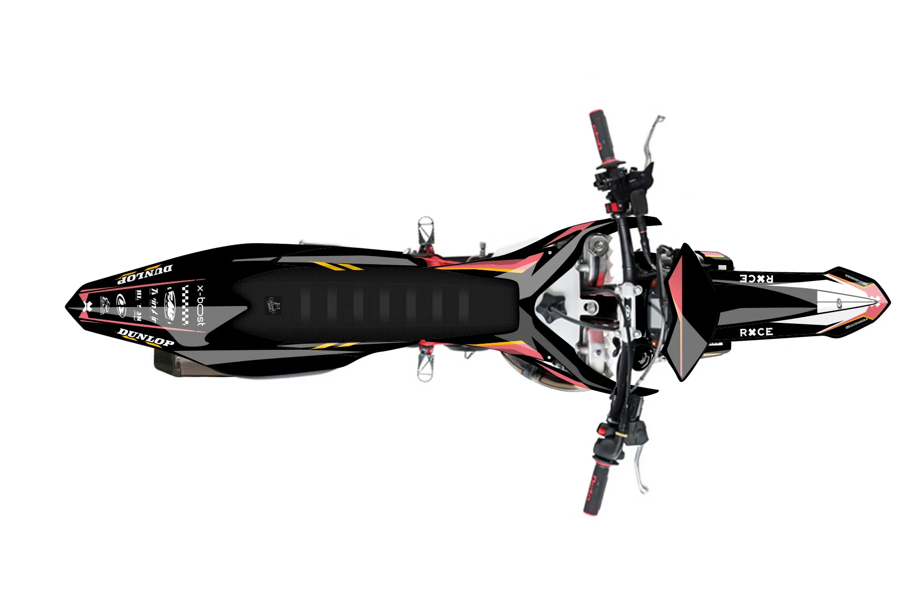 «Charge» — готовый комплект графики серии Maverick для Beta Enduro Graphic Kit Beta RR 300 2019. В комплекте: графика на бак и боковые облицовки, крылья (переднее и заднее), передний щиток, номерные таблички, защита вилки. Материал: ПВХ-винил 80 мкр с холодной ламинацией 300 мкр, общая толщина 380 мкр; покрытие глянцевое или матовое на выбор. Устойчив к UV-излучению, воде, бензину и мойке высокого давления. Клей акриловый на сольвентной основе — постоянный, для гибких пластиков. На простых поверхностях монтируется без нагрева; для сложных изгибов рекомендуем фен. Этот пресет можно заказать как есть или взять за основу в конструкторе: поменять цвета, добавить стартовый номер и свой бренд. Производство — 3–5 рабочих дней, доставка по России СДЭКом или Почтой, по СНГ — курьерскими службами.