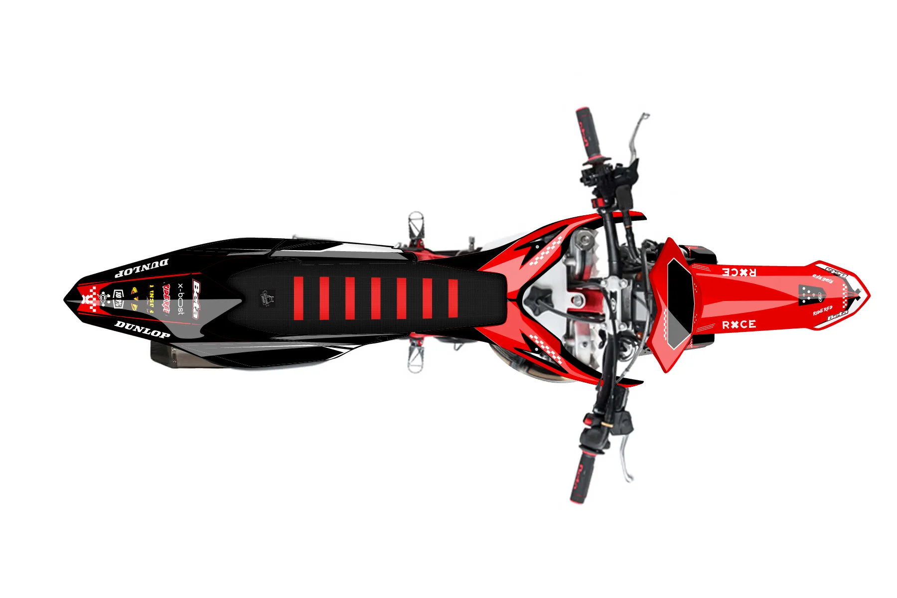 «Covering» — готовый комплект графики серии Staple для Beta Enduro Graphic Kit Beta RR 300 2019. В комплекте: графика на бак и боковые облицовки, крылья (переднее и заднее), передний щиток, номерные таблички, защита вилки. Материал: ПВХ-винил 80 мкр с холодной ламинацией 300 мкр, общая толщина 380 мкр; покрытие глянцевое или матовое на выбор. Устойчив к UV-излучению, воде, бензину и мойке высокого давления. Клей акриловый на сольвентной основе — постоянный, для гибких пластиков. На простых поверхностях монтируется без нагрева; для сложных изгибов рекомендуем фен. Этот пресет можно заказать как есть или взять за основу в конструкторе: поменять цвета, добавить стартовый номер и свой бренд. Производство — 3–5 рабочих дней, доставка по России СДЭКом или Почтой, по СНГ — курьерскими службами.