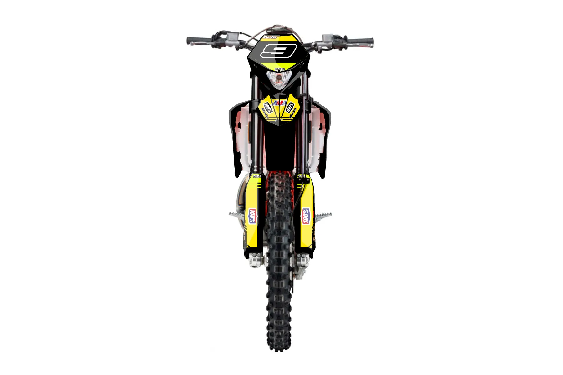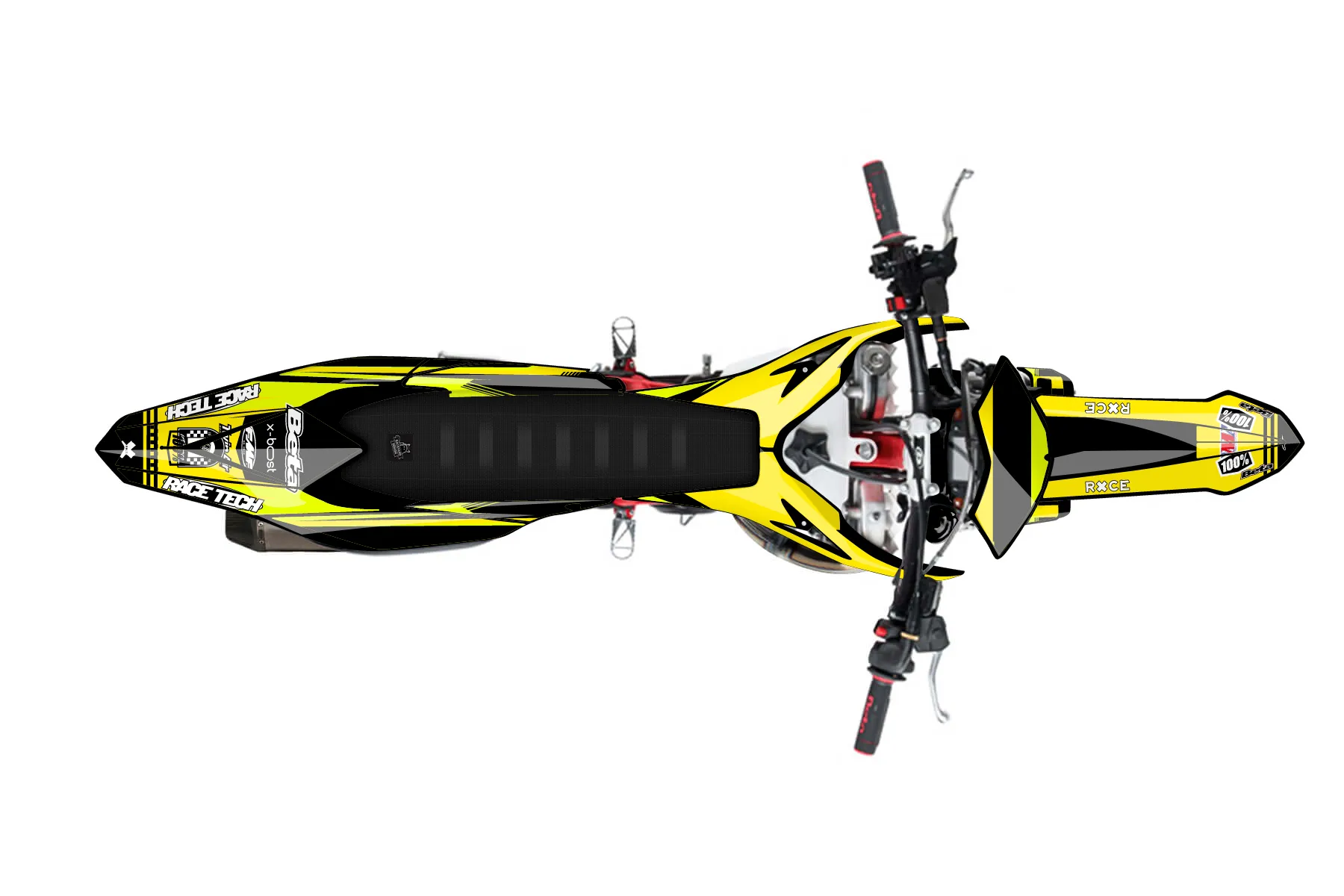 «BetaBanana» — готовый комплект графики серии Untucked для Beta Enduro Graphic Kit Beta RR 300 2019. В комплекте: графика на бак и боковые облицовки, крылья (переднее и заднее), передний щиток, номерные таблички, защита вилки. Материал: ПВХ-винил 80 мкр с холодной ламинацией 300 мкр, общая толщина 380 мкр; покрытие глянцевое или матовое на выбор. Устойчив к UV-излучению, воде, бензину и мойке высокого давления. Клей акриловый на сольвентной основе — постоянный, для гибких пластиков. На простых поверхностях монтируется без нагрева; для сложных изгибов рекомендуем фен. Этот пресет можно заказать как есть или взять за основу в конструкторе: поменять цвета, добавить стартовый номер и свой бренд. Производство — 3–5 рабочих дней, доставка по России СДЭКом или Почтой, по СНГ — курьерскими службами.