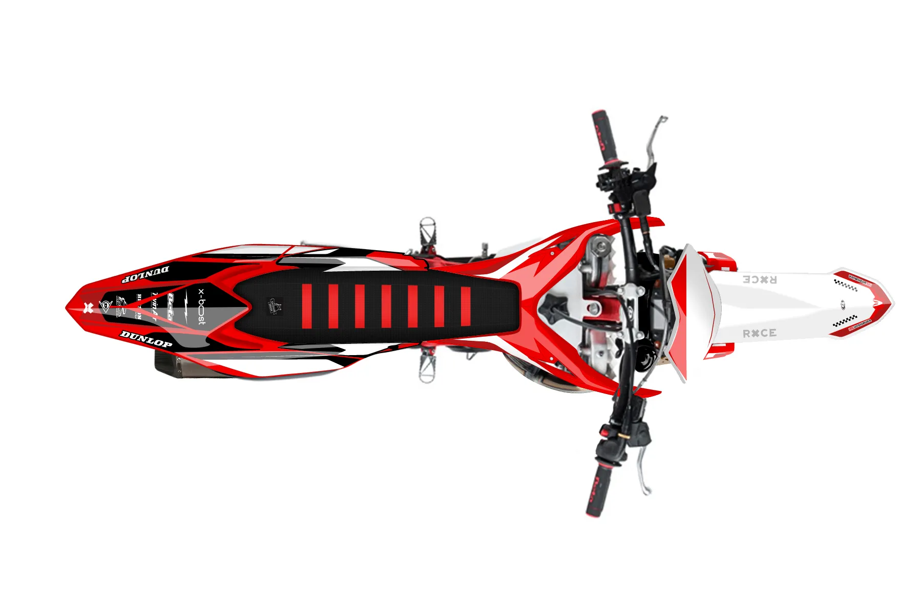 «Bold» — готовый комплект графики серии Flow для Beta Enduro Graphic Kit Beta RR 300 2021. В комплекте: графика на бак и боковые облицовки, крылья (переднее и заднее), передний щиток, номерные таблички, защита вилки. Материал: ПВХ-винил 80 мкр с холодной ламинацией 300 мкр, общая толщина 380 мкр; покрытие глянцевое или матовое на выбор. Устойчив к UV-излучению, воде, бензину и мойке высокого давления. Клей акриловый на сольвентной основе — постоянный, для гибких пластиков. На простых поверхностях монтируется без нагрева; для сложных изгибов рекомендуем фен. Этот пресет можно заказать как есть или взять за основу в конструкторе: поменять цвета, добавить стартовый номер и свой бренд. Производство — 3–5 рабочих дней, доставка по России СДЭКом или Почтой, по СНГ — курьерскими службами.