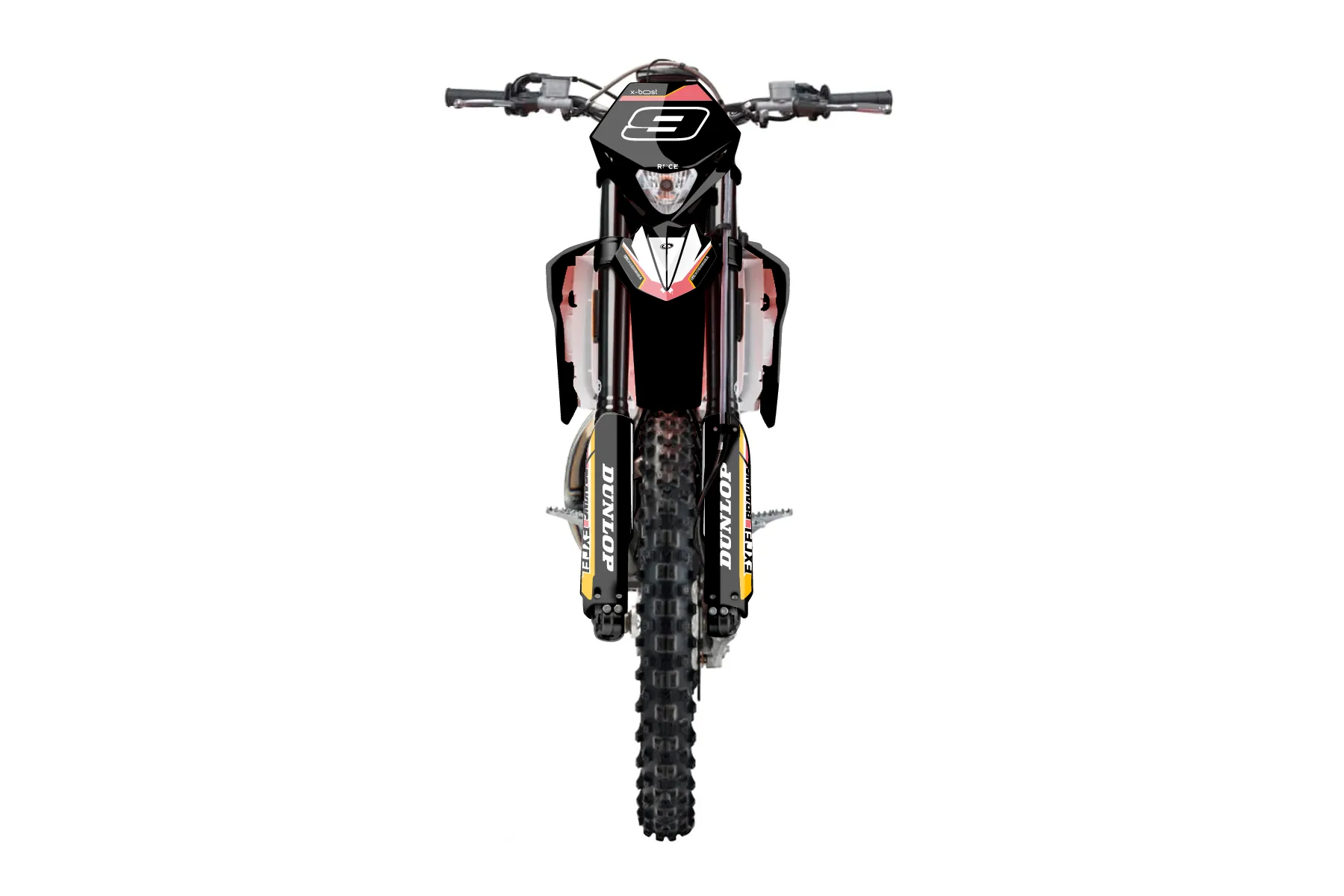 «Charge» — готовый комплект графики серии Maverick для Beta Enduro Graphic Kit Beta RR 300 2021. В комплекте: графика на бак и боковые облицовки, крылья (переднее и заднее), передний щиток, номерные таблички, защита вилки. Материал: ПВХ-винил 80 мкр с холодной ламинацией 300 мкр, общая толщина 380 мкр; покрытие глянцевое или матовое на выбор. Устойчив к UV-излучению, воде, бензину и мойке высокого давления. Клей акриловый на сольвентной основе — постоянный, для гибких пластиков. На простых поверхностях монтируется без нагрева; для сложных изгибов рекомендуем фен. Этот пресет можно заказать как есть или взять за основу в конструкторе: поменять цвета, добавить стартовый номер и свой бренд. Производство — 3–5 рабочих дней, доставка по России СДЭКом или Почтой, по СНГ — курьерскими службами.