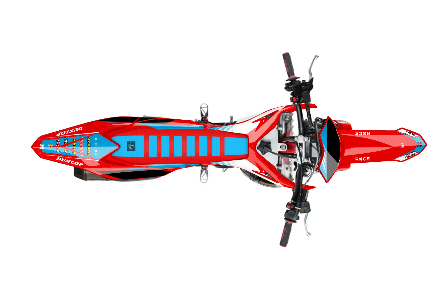 «Showtime» — готовый комплект графики серии Maverick для Beta Enduro Graphic Kit Beta RR 300 2021. В комплекте: графика на бак и боковые облицовки, крылья (переднее и заднее), передний щиток, номерные таблички, защита вилки. Материал: ПВХ-винил 80 мкр с холодной ламинацией 300 мкр, общая толщина 380 мкр; покрытие глянцевое или матовое на выбор. Устойчив к UV-излучению, воде, бензину и мойке высокого давления. Клей акриловый на сольвентной основе — постоянный, для гибких пластиков. На простых поверхностях монтируется без нагрева; для сложных изгибов рекомендуем фен. Этот пресет можно заказать как есть или взять за основу в конструкторе: поменять цвета, добавить стартовый номер и свой бренд. Производство — 3–5 рабочих дней, доставка по России СДЭКом или Почтой, по СНГ — курьерскими службами.