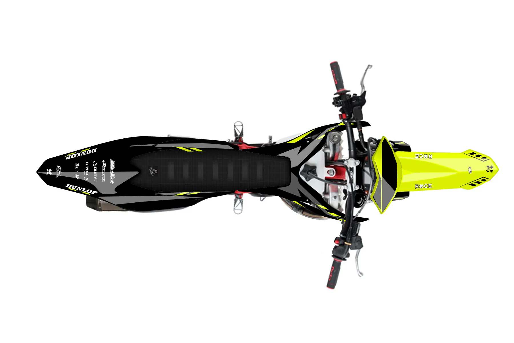 «Vivid Neon» — готовый комплект графики серии Maverick для Beta Enduro Graphic Kit Beta RR 300 2021. В комплекте: графика на бак и боковые облицовки, крылья (переднее и заднее), передний щиток, номерные таблички, защита вилки. Материал: ПВХ-винил 80 мкр с холодной ламинацией 300 мкр, общая толщина 380 мкр; покрытие глянцевое или матовое на выбор. Устойчив к UV-излучению, воде, бензину и мойке высокого давления. Клей акриловый на сольвентной основе — постоянный, для гибких пластиков. На простых поверхностях монтируется без нагрева; для сложных изгибов рекомендуем фен. Этот пресет можно заказать как есть или взять за основу в конструкторе: поменять цвета, добавить стартовый номер и свой бренд. Производство — 3–5 рабочих дней, доставка по России СДЭКом или Почтой, по СНГ — курьерскими службами.