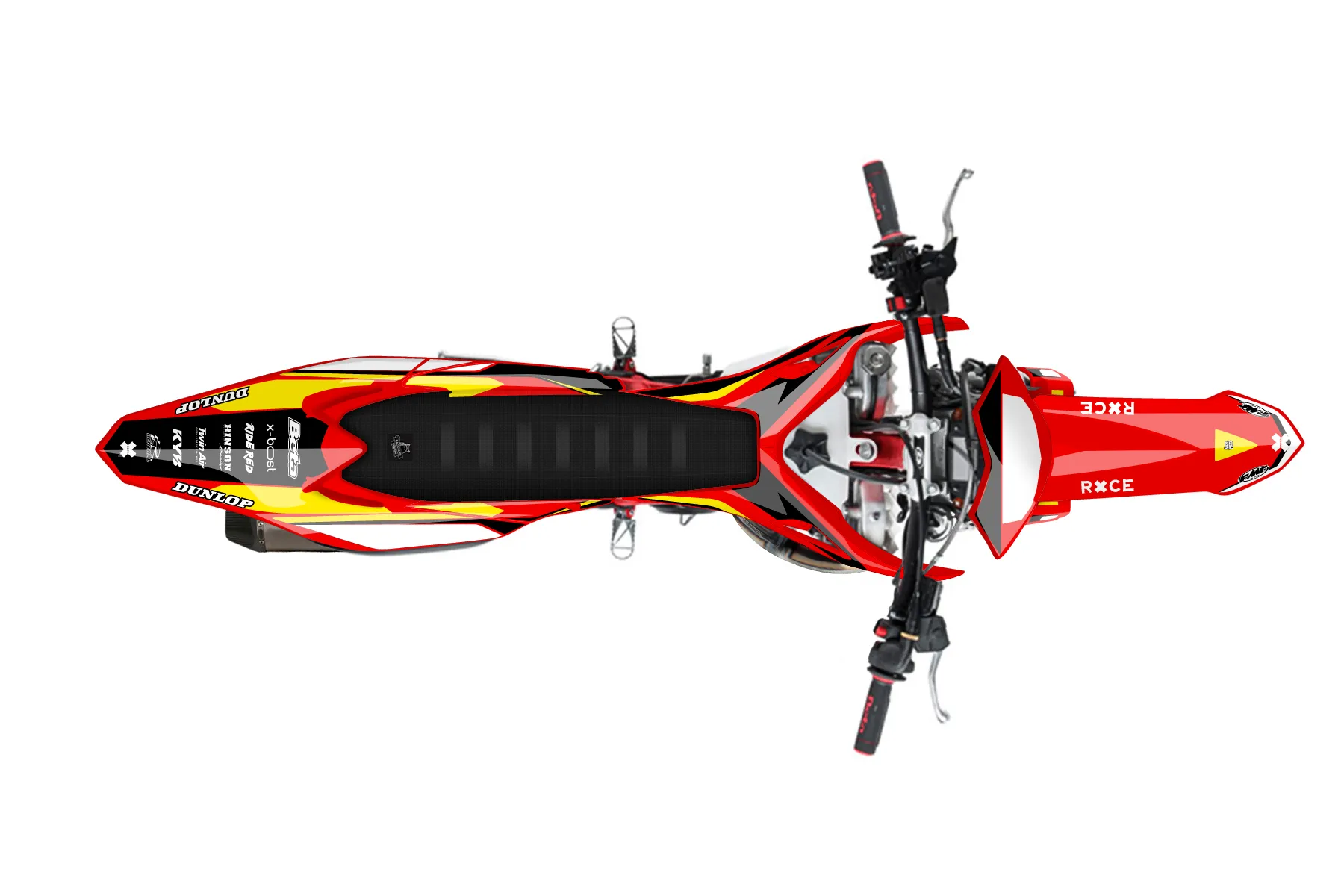 «Invent» — готовый комплект графики серии Flow для Beta Enduro Graphic Kit Beta RR 300 2022. В комплекте: графика на бак и боковые облицовки, крылья (переднее и заднее), передний щиток, номерные таблички, защита вилки. Материал: ПВХ-винил 80 мкр с холодной ламинацией 300 мкр, общая толщина 380 мкр; покрытие глянцевое или матовое на выбор. Устойчив к UV-излучению, воде, бензину и мойке высокого давления. Клей акриловый на сольвентной основе — постоянный, для гибких пластиков. На простых поверхностях монтируется без нагрева; для сложных изгибов рекомендуем фен. Этот пресет можно заказать как есть или взять за основу в конструкторе: поменять цвета, добавить стартовый номер и свой бренд. Производство — 3–5 рабочих дней, доставка по России СДЭКом или Почтой, по СНГ — курьерскими службами.