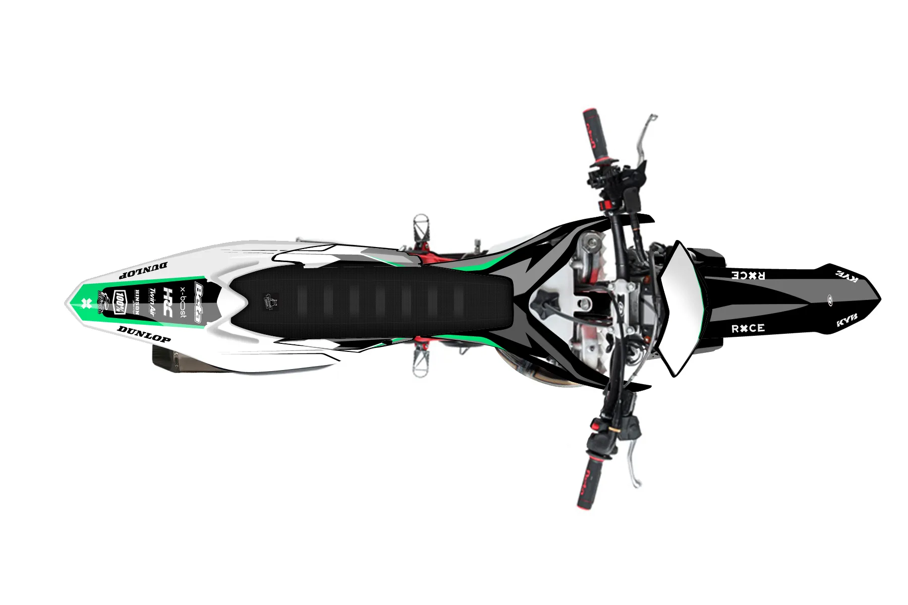 «Vector» — готовый комплект графики серии Flow для Beta Enduro Graphic Kit Beta RR 300 2022. В комплекте: графика на бак и боковые облицовки, крылья (переднее и заднее), передний щиток, номерные таблички, защита вилки. Материал: ПВХ-винил 80 мкр с холодной ламинацией 300 мкр, общая толщина 380 мкр; покрытие глянцевое или матовое на выбор. Устойчив к UV-излучению, воде, бензину и мойке высокого давления. Клей акриловый на сольвентной основе — постоянный, для гибких пластиков. На простых поверхностях монтируется без нагрева; для сложных изгибов рекомендуем фен. Этот пресет можно заказать как есть или взять за основу в конструкторе: поменять цвета, добавить стартовый номер и свой бренд. Производство — 3–5 рабочих дней, доставка по России СДЭКом или Почтой, по СНГ — курьерскими службами.