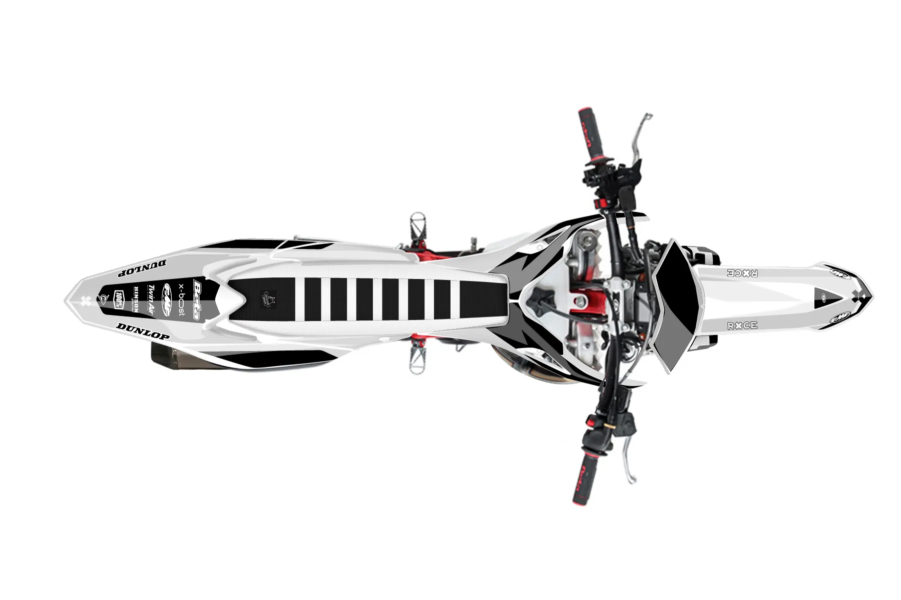 «Worx» — готовый комплект графики серии Flow для Beta Enduro Graphic Kit Beta RR 300 2022. В комплекте: графика на бак и боковые облицовки, крылья (переднее и заднее), передний щиток, номерные таблички, защита вилки. Материал: ПВХ-винил 80 мкр с холодной ламинацией 300 мкр, общая толщина 380 мкр; покрытие глянцевое или матовое на выбор. Устойчив к UV-излучению, воде, бензину и мойке высокого давления. Клей акриловый на сольвентной основе — постоянный, для гибких пластиков. На простых поверхностях монтируется без нагрева; для сложных изгибов рекомендуем фен. Этот пресет можно заказать как есть или взять за основу в конструкторе: поменять цвета, добавить стартовый номер и свой бренд. Производство — 3–5 рабочих дней, доставка по России СДЭКом или Почтой, по СНГ — курьерскими службами.