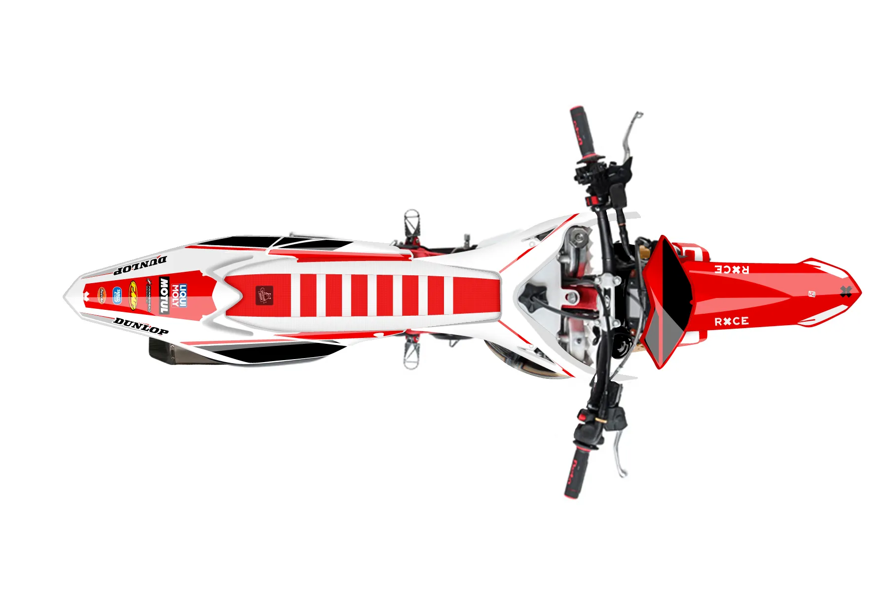 «CustomDesign» — готовый комплект графики серии Maverick для Beta Enduro Graphic Kit Beta RR 300 2022. В комплекте: графика на бак и боковые облицовки, крылья (переднее и заднее), передний щиток, номерные таблички, защита вилки. Материал: ПВХ-винил 80 мкр с холодной ламинацией 300 мкр, общая толщина 380 мкр; покрытие глянцевое или матовое на выбор. Устойчив к UV-излучению, воде, бензину и мойке высокого давления. Клей акриловый на сольвентной основе — постоянный, для гибких пластиков. На простых поверхностях монтируется без нагрева; для сложных изгибов рекомендуем фен. Этот пресет можно заказать как есть или взять за основу в конструкторе: поменять цвета, добавить стартовый номер и свой бренд. Производство — 3–5 рабочих дней, доставка по России СДЭКом или Почтой, по СНГ — курьерскими службами.