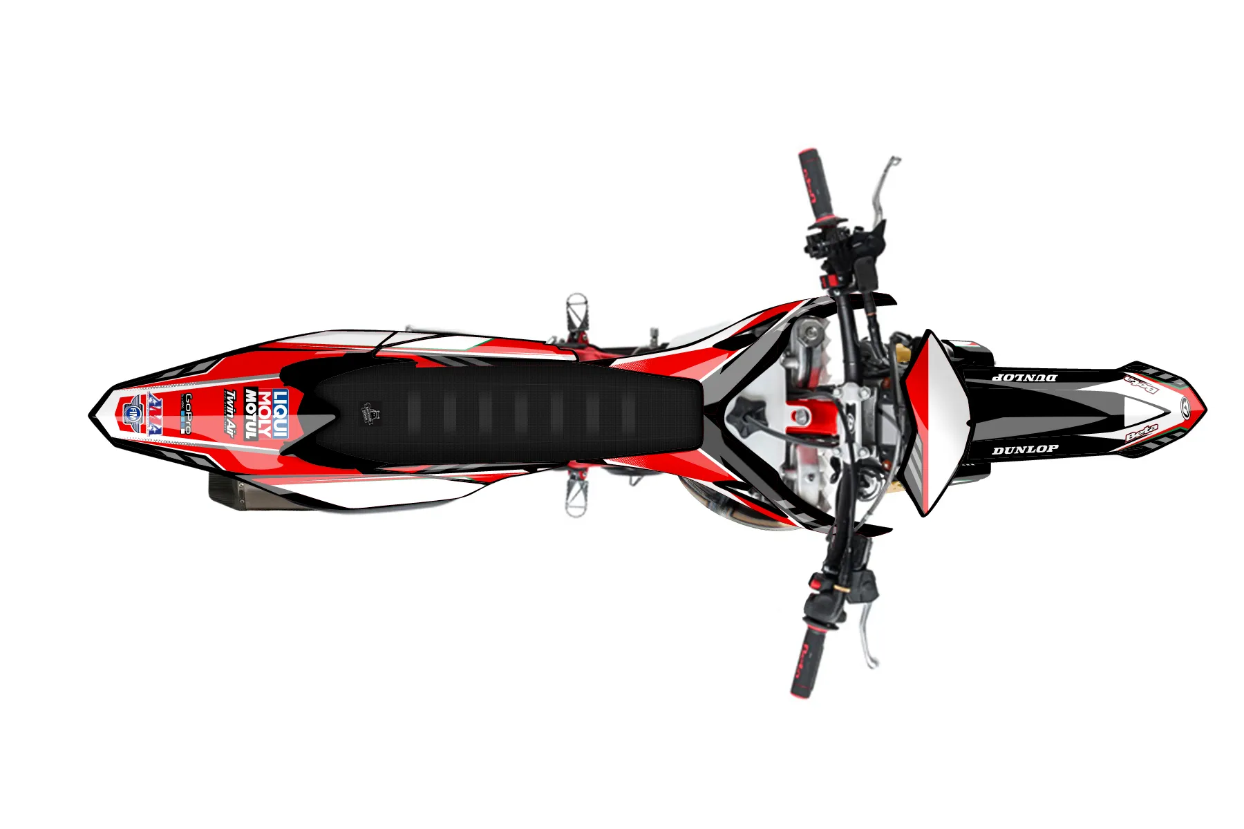 «JY_Final19» — готовый комплект графики серии Maverick для Beta Enduro Graphic Kit Beta RR 300 2022. В комплекте: графика на бак и боковые облицовки, крылья (переднее и заднее), передний щиток, номерные таблички, защита вилки. Материал: ПВХ-винил 80 мкр с холодной ламинацией 300 мкр, общая толщина 380 мкр; покрытие глянцевое или матовое на выбор. Устойчив к UV-излучению, воде, бензину и мойке высокого давления. Клей акриловый на сольвентной основе — постоянный, для гибких пластиков. На простых поверхностях монтируется без нагрева; для сложных изгибов рекомендуем фен. Этот пресет можно заказать как есть или взять за основу в конструкторе: поменять цвета, добавить стартовый номер и свой бренд. Производство — 3–5 рабочих дней, доставка по России СДЭКом или Почтой, по СНГ — курьерскими службами.