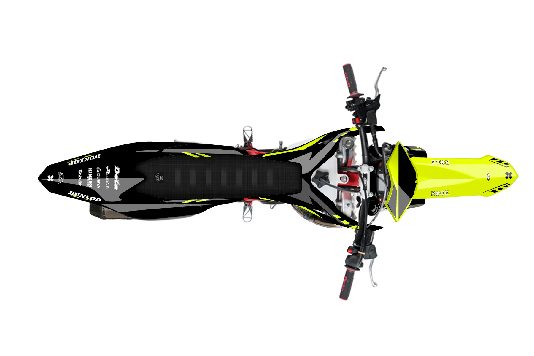 «Vivid Neon» — готовый комплект графики серии Maverick для Beta Enduro Graphic Kit Beta RR 300 2022. В комплекте: графика на бак и боковые облицовки, крылья (переднее и заднее), передний щиток, номерные таблички, защита вилки. Материал: ПВХ-винил 80 мкр с холодной ламинацией 300 мкр, общая толщина 380 мкр; покрытие глянцевое или матовое на выбор. Устойчив к UV-излучению, воде, бензину и мойке высокого давления. Клей акриловый на сольвентной основе — постоянный, для гибких пластиков. На простых поверхностях монтируется без нагрева; для сложных изгибов рекомендуем фен. Этот пресет можно заказать как есть или взять за основу в конструкторе: поменять цвета, добавить стартовый номер и свой бренд. Производство — 3–5 рабочих дней, доставка по России СДЭКом или Почтой, по СНГ — курьерскими службами.