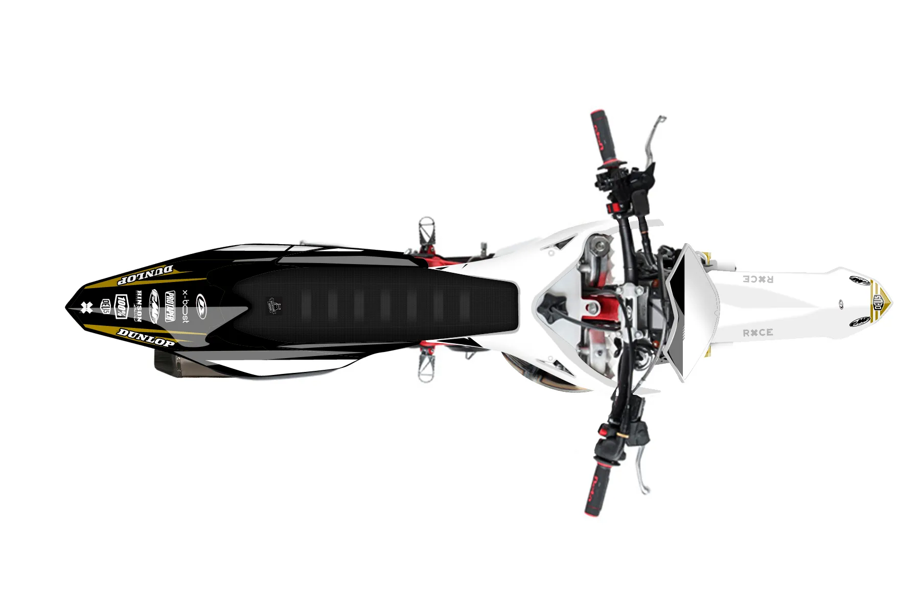«Agile» — готовый комплект графики серии Untucked для Beta Enduro Graphic Kit Beta RR 300 2022. В комплекте: графика на бак и боковые облицовки, крылья (переднее и заднее), передний щиток, номерные таблички, защита вилки. Материал: ПВХ-винил 80 мкр с холодной ламинацией 300 мкр, общая толщина 380 мкр; покрытие глянцевое или матовое на выбор. Устойчив к UV-излучению, воде, бензину и мойке высокого давления. Клей акриловый на сольвентной основе — постоянный, для гибких пластиков. На простых поверхностях монтируется без нагрева; для сложных изгибов рекомендуем фен. Этот пресет можно заказать как есть или взять за основу в конструкторе: поменять цвета, добавить стартовый номер и свой бренд. Производство — 3–5 рабочих дней, доставка по России СДЭКом или Почтой, по СНГ — курьерскими службами.