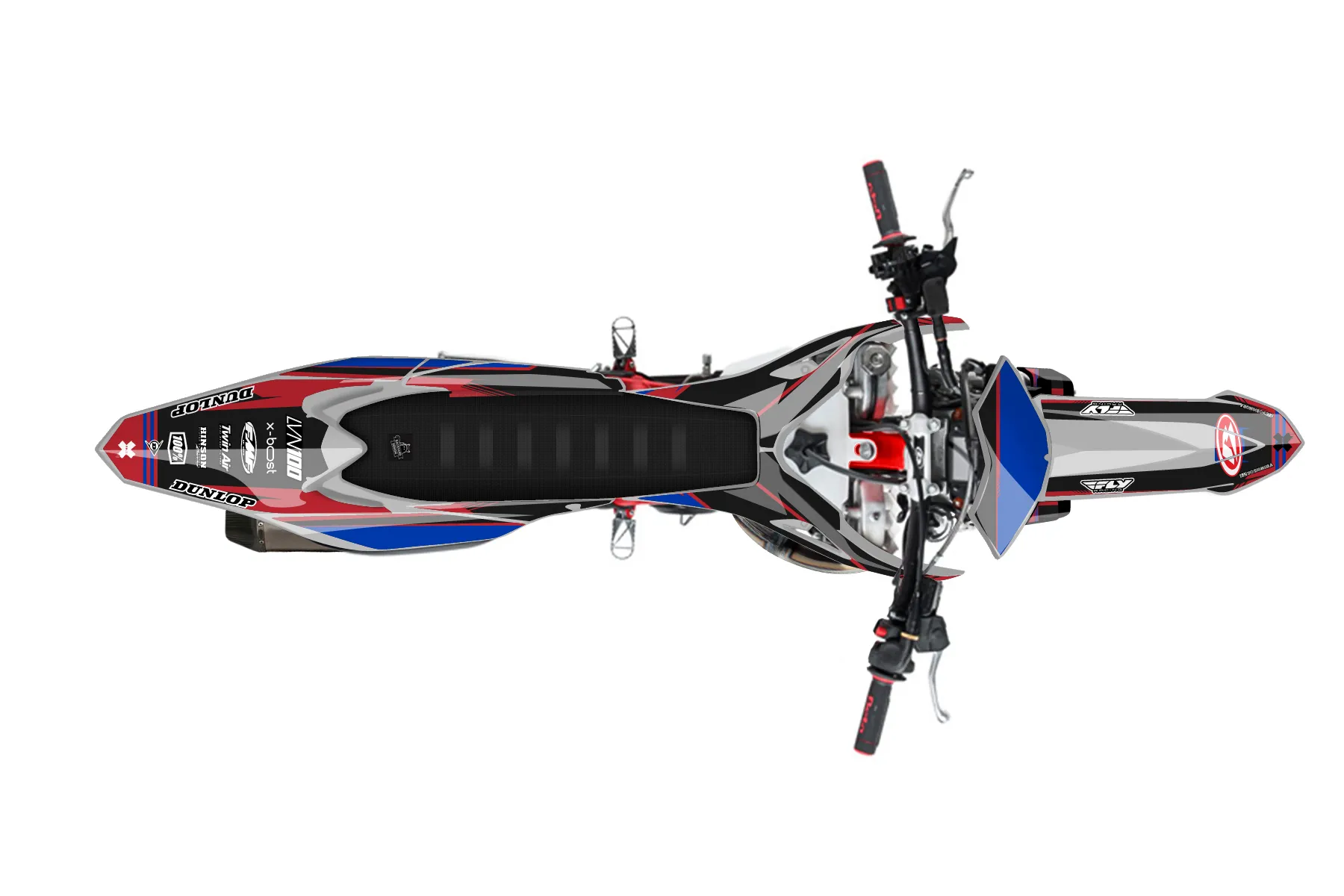 «Beta 2023» — готовый комплект графики серии Untucked для Beta Enduro Graphic Kit Beta RR 300 2022. В комплекте: графика на бак и боковые облицовки, крылья (переднее и заднее), передний щиток, номерные таблички, защита вилки. Материал: ПВХ-винил 80 мкр с холодной ламинацией 300 мкр, общая толщина 380 мкр; покрытие глянцевое или матовое на выбор. Устойчив к UV-излучению, воде, бензину и мойке высокого давления. Клей акриловый на сольвентной основе — постоянный, для гибких пластиков. На простых поверхностях монтируется без нагрева; для сложных изгибов рекомендуем фен. Этот пресет можно заказать как есть или взять за основу в конструкторе: поменять цвета, добавить стартовый номер и свой бренд. Производство — 3–5 рабочих дней, доставка по России СДЭКом или Почтой, по СНГ — курьерскими службами.