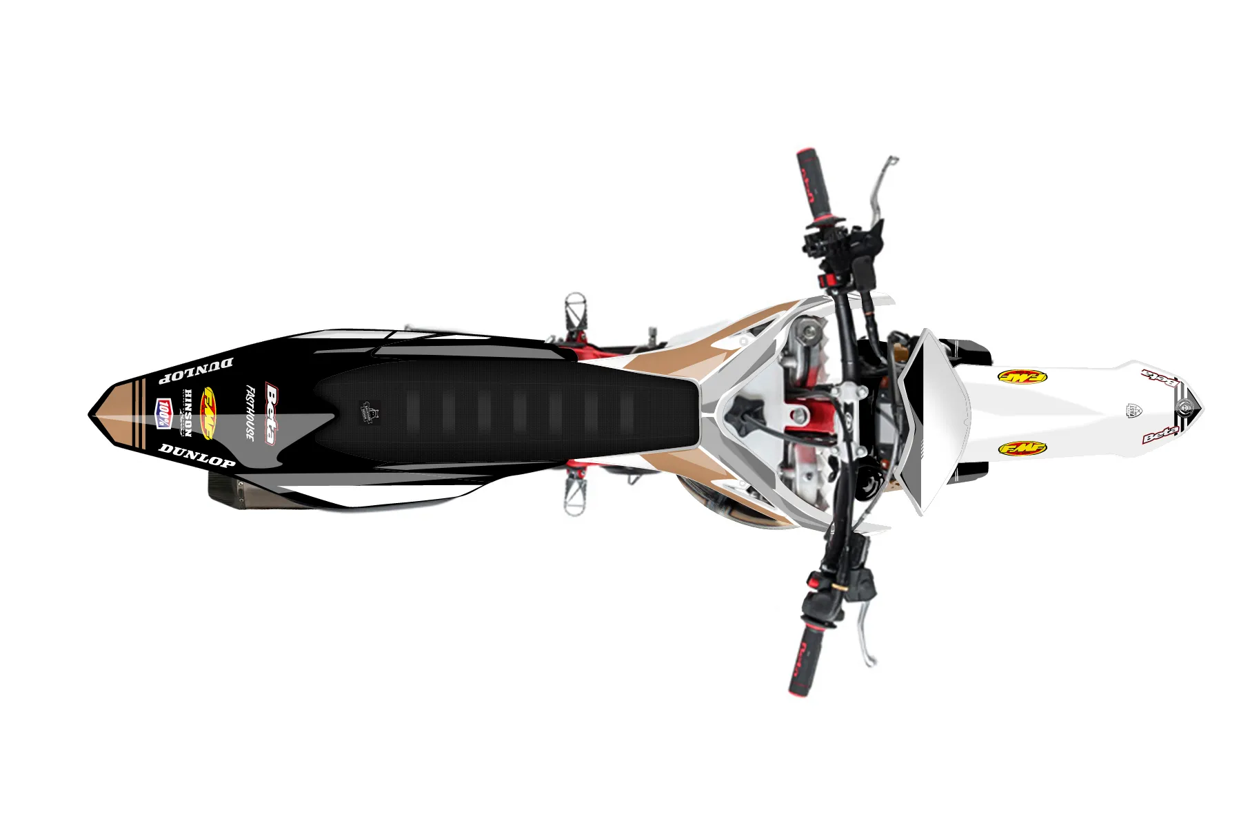 «FH Beta» — готовый комплект графики серии Untucked для Beta Enduro Graphic Kit Beta RR 300 2022. В комплекте: графика на бак и боковые облицовки, крылья (переднее и заднее), передний щиток, номерные таблички, защита вилки. Материал: ПВХ-винил 80 мкр с холодной ламинацией 300 мкр, общая толщина 380 мкр; покрытие глянцевое или матовое на выбор. Устойчив к UV-излучению, воде, бензину и мойке высокого давления. Клей акриловый на сольвентной основе — постоянный, для гибких пластиков. На простых поверхностях монтируется без нагрева; для сложных изгибов рекомендуем фен. Этот пресет можно заказать как есть или взять за основу в конструкторе: поменять цвета, добавить стартовый номер и свой бренд. Производство — 3–5 рабочих дней, доставка по России СДЭКом или Почтой, по СНГ — курьерскими службами.