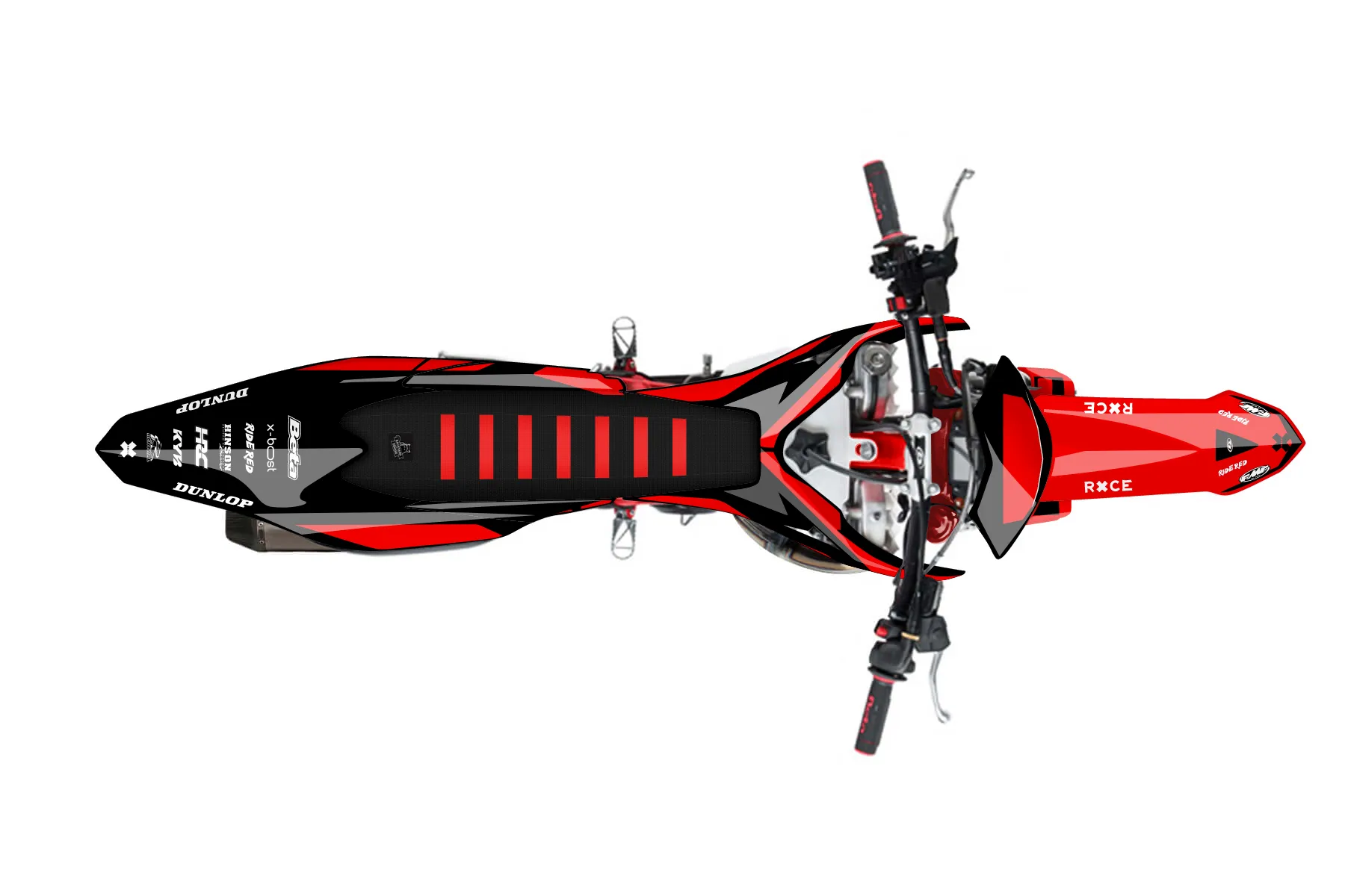 «CustomDesignBETA» — готовый комплект графики серии Flow для Beta Enduro Graphic Kit Beta RR 300 2023. В комплекте: графика на бак и боковые облицовки, крылья (переднее и заднее), передний щиток, номерные таблички, защита вилки. Материал: ПВХ-винил 80 мкр с холодной ламинацией 300 мкр, общая толщина 380 мкр; покрытие глянцевое или матовое на выбор. Устойчив к UV-излучению, воде, бензину и мойке высокого давления. Клей акриловый на сольвентной основе — постоянный, для гибких пластиков. На простых поверхностях монтируется без нагрева; для сложных изгибов рекомендуем фен. Этот пресет можно заказать как есть или взять за основу в конструкторе: поменять цвета, добавить стартовый номер и свой бренд. Производство — 3–5 рабочих дней, доставка по России СДЭКом или Почтой, по СНГ — курьерскими службами.