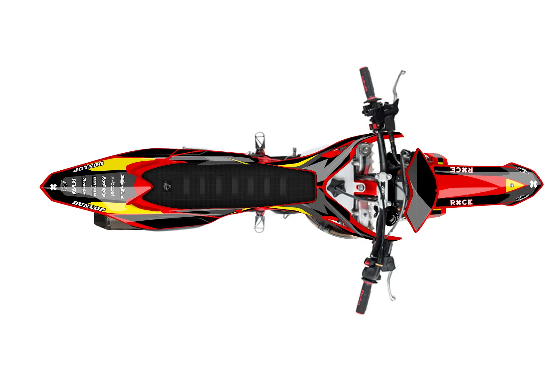 «my beta 300rr» — готовый комплект графики серии Flow для Beta Enduro Graphic Kit Beta RR 300 2023. В комплекте: графика на бак и боковые облицовки, крылья (переднее и заднее), передний щиток, номерные таблички, защита вилки. Материал: ПВХ-винил 80 мкр с холодной ламинацией 300 мкр, общая толщина 380 мкр; покрытие глянцевое или матовое на выбор. Устойчив к UV-излучению, воде, бензину и мойке высокого давления. Клей акриловый на сольвентной основе — постоянный, для гибких пластиков. На простых поверхностях монтируется без нагрева; для сложных изгибов рекомендуем фен. Этот пресет можно заказать как есть или взять за основу в конструкторе: поменять цвета, добавить стартовый номер и свой бренд. Производство — 3–5 рабочих дней, доставка по России СДЭКом или Почтой, по СНГ — курьерскими службами.