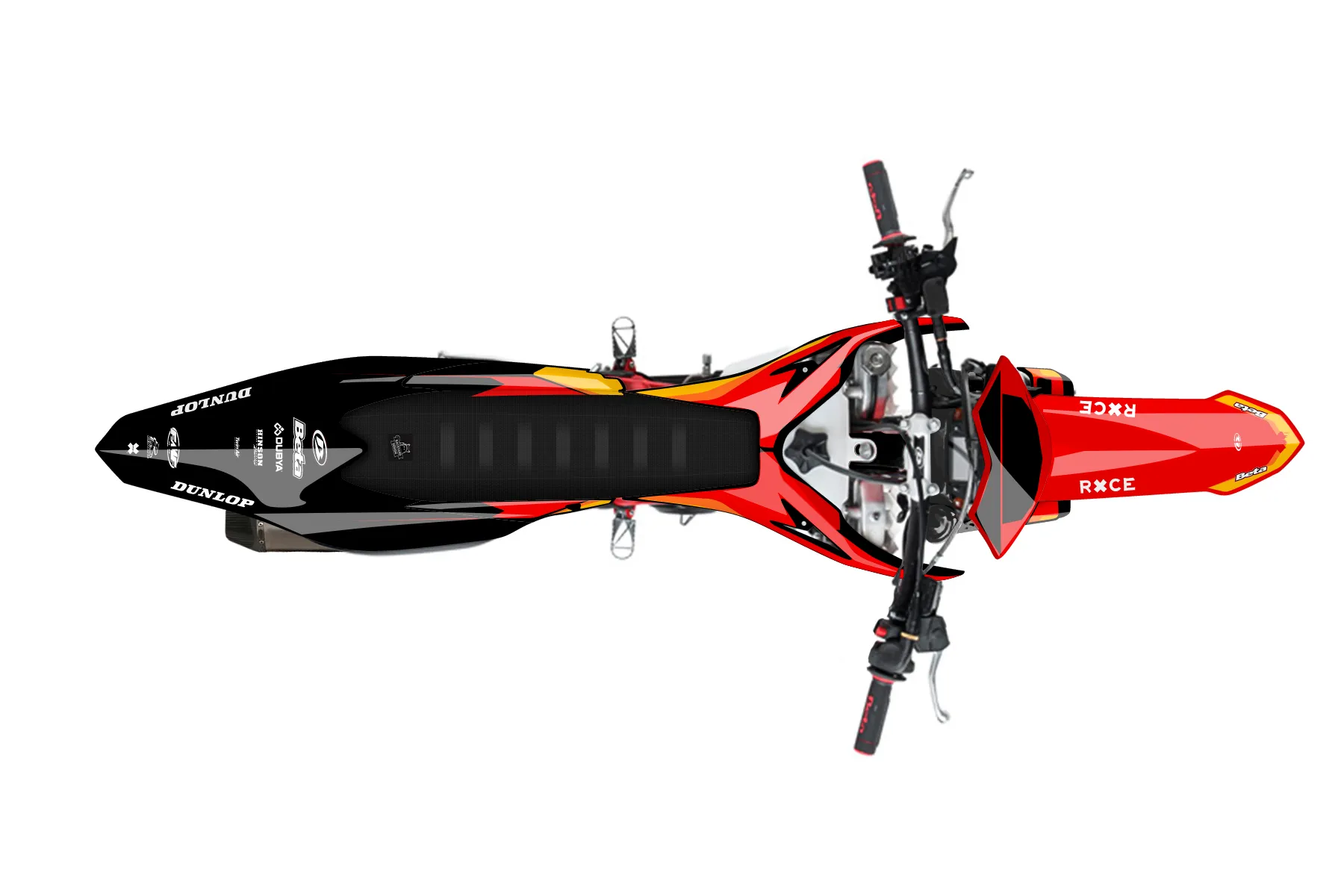 «Trait» — готовый комплект графики серии Flow для Beta Enduro Graphic Kit Beta RR 350 2019. В комплекте: графика на бак и боковые облицовки, крылья (переднее и заднее), передний щиток, номерные таблички, защита вилки. Материал: ПВХ-винил 80 мкр с холодной ламинацией 300 мкр, общая толщина 380 мкр; покрытие глянцевое или матовое на выбор. Устойчив к UV-излучению, воде, бензину и мойке высокого давления. Клей акриловый на сольвентной основе — постоянный, для гибких пластиков. На простых поверхностях монтируется без нагрева; для сложных изгибов рекомендуем фен. Этот пресет можно заказать как есть или взять за основу в конструкторе: поменять цвета, добавить стартовый номер и свой бренд. Производство — 3–5 рабочих дней, доставка по России СДЭКом или Почтой, по СНГ — курьерскими службами.