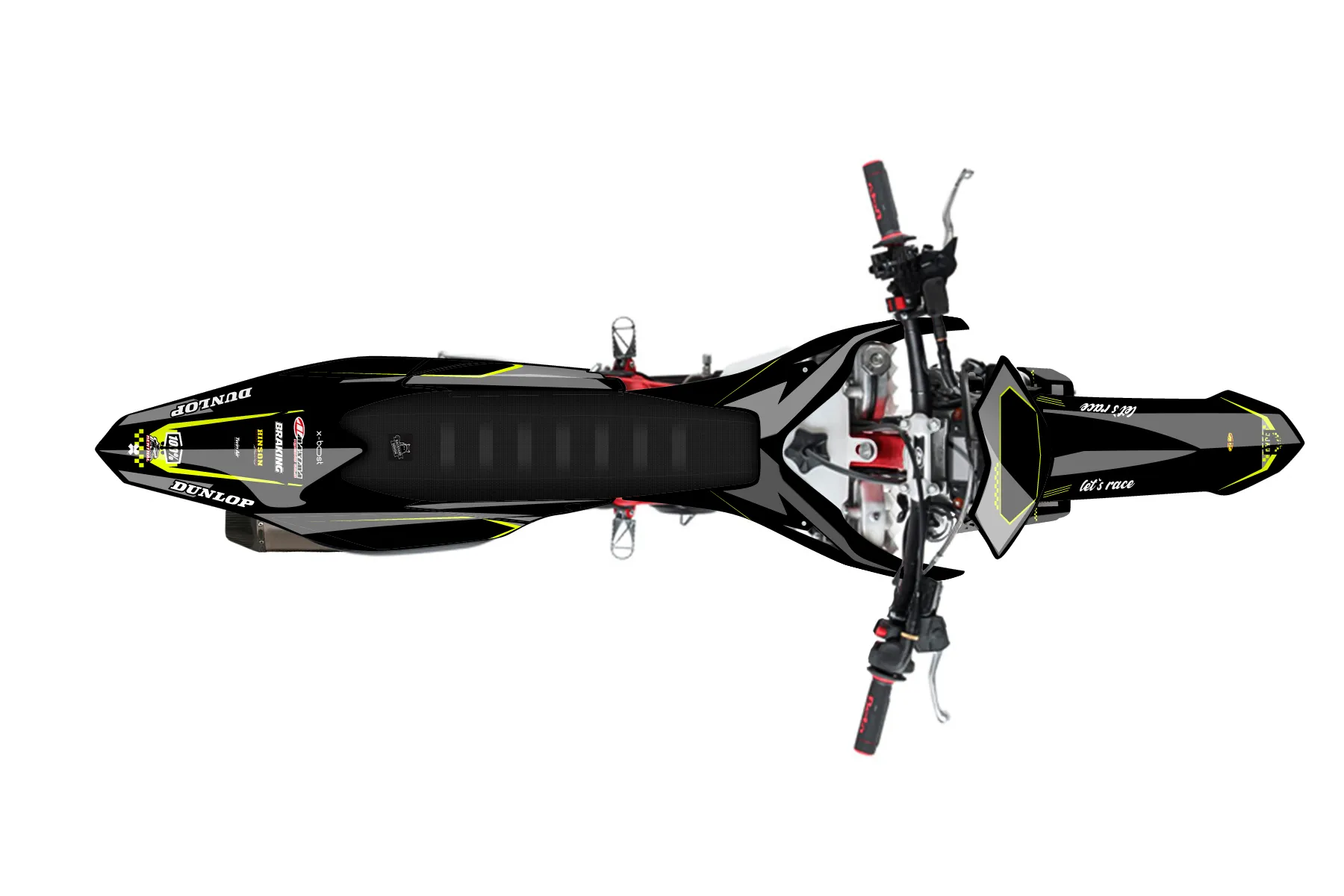 «Bright Neon» — готовый комплект графики серии Staple для Beta Enduro Graphic Kit Beta RR 350 2019. В комплекте: графика на бак и боковые облицовки, крылья (переднее и заднее), передний щиток, номерные таблички, защита вилки. Материал: ПВХ-винил 80 мкр с холодной ламинацией 300 мкр, общая толщина 380 мкр; покрытие глянцевое или матовое на выбор. Устойчив к UV-излучению, воде, бензину и мойке высокого давления. Клей акриловый на сольвентной основе — постоянный, для гибких пластиков. На простых поверхностях монтируется без нагрева; для сложных изгибов рекомендуем фен. Этот пресет можно заказать как есть или взять за основу в конструкторе: поменять цвета, добавить стартовый номер и свой бренд. Производство — 3–5 рабочих дней, доставка по России СДЭКом или Почтой, по СНГ — курьерскими службами.