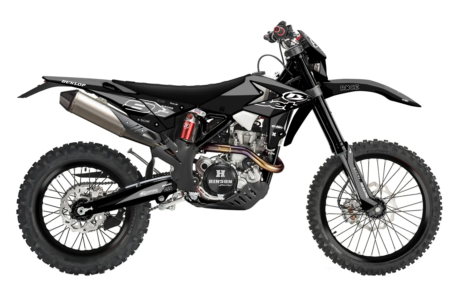 «Stunner» — готовый комплект графики серии Staple для Beta Enduro Graphic Kit Beta RR 350 2021. В комплекте: графика на бак и боковые облицовки, крылья (переднее и заднее), передний щиток, номерные таблички, защита вилки. Материал: ПВХ-винил 80 мкр с холодной ламинацией 300 мкр, общая толщина 380 мкр; покрытие глянцевое или матовое на выбор. Устойчив к UV-излучению, воде, бензину и мойке высокого давления. Клей акриловый на сольвентной основе — постоянный, для гибких пластиков. На простых поверхностях монтируется без нагрева; для сложных изгибов рекомендуем фен. Этот пресет можно заказать как есть или взять за основу в конструкторе: поменять цвета, добавить стартовый номер и свой бренд. Производство — 3–5 рабочих дней, доставка по России СДЭКом или Почтой, по СНГ — курьерскими службами.