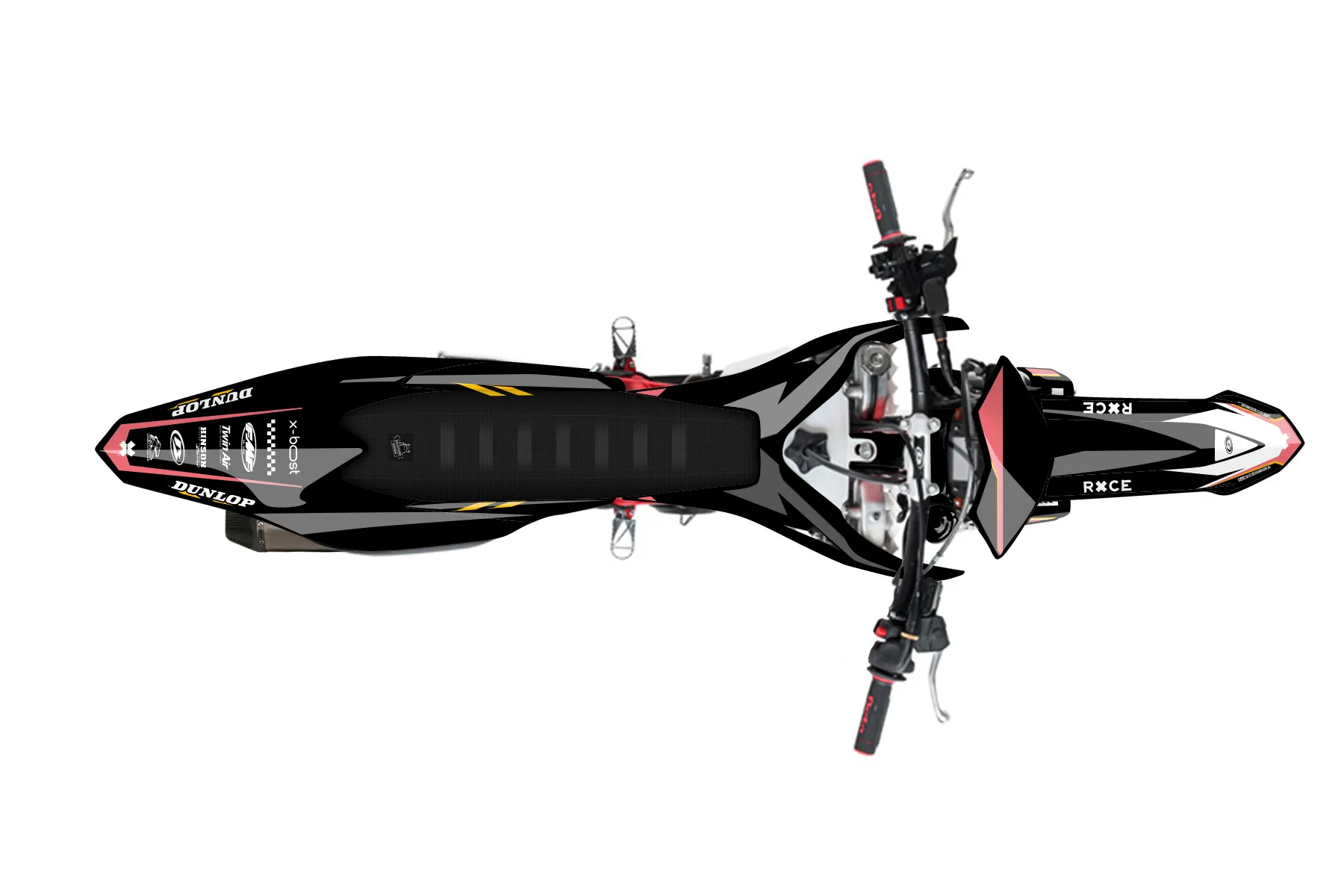 «Charge» — готовый комплект графики серии Maverick для Beta Enduro Graphic Kit Beta RR 350 2022. В комплекте: графика на бак и боковые облицовки, крылья (переднее и заднее), передний щиток, номерные таблички, защита вилки. Материал: ПВХ-винил 80 мкр с холодной ламинацией 300 мкр, общая толщина 380 мкр; покрытие глянцевое или матовое на выбор. Устойчив к UV-излучению, воде, бензину и мойке высокого давления. Клей акриловый на сольвентной основе — постоянный, для гибких пластиков. На простых поверхностях монтируется без нагрева; для сложных изгибов рекомендуем фен. Этот пресет можно заказать как есть или взять за основу в конструкторе: поменять цвета, добавить стартовый номер и свой бренд. Производство — 3–5 рабочих дней, доставка по России СДЭКом или Почтой, по СНГ — курьерскими службами.