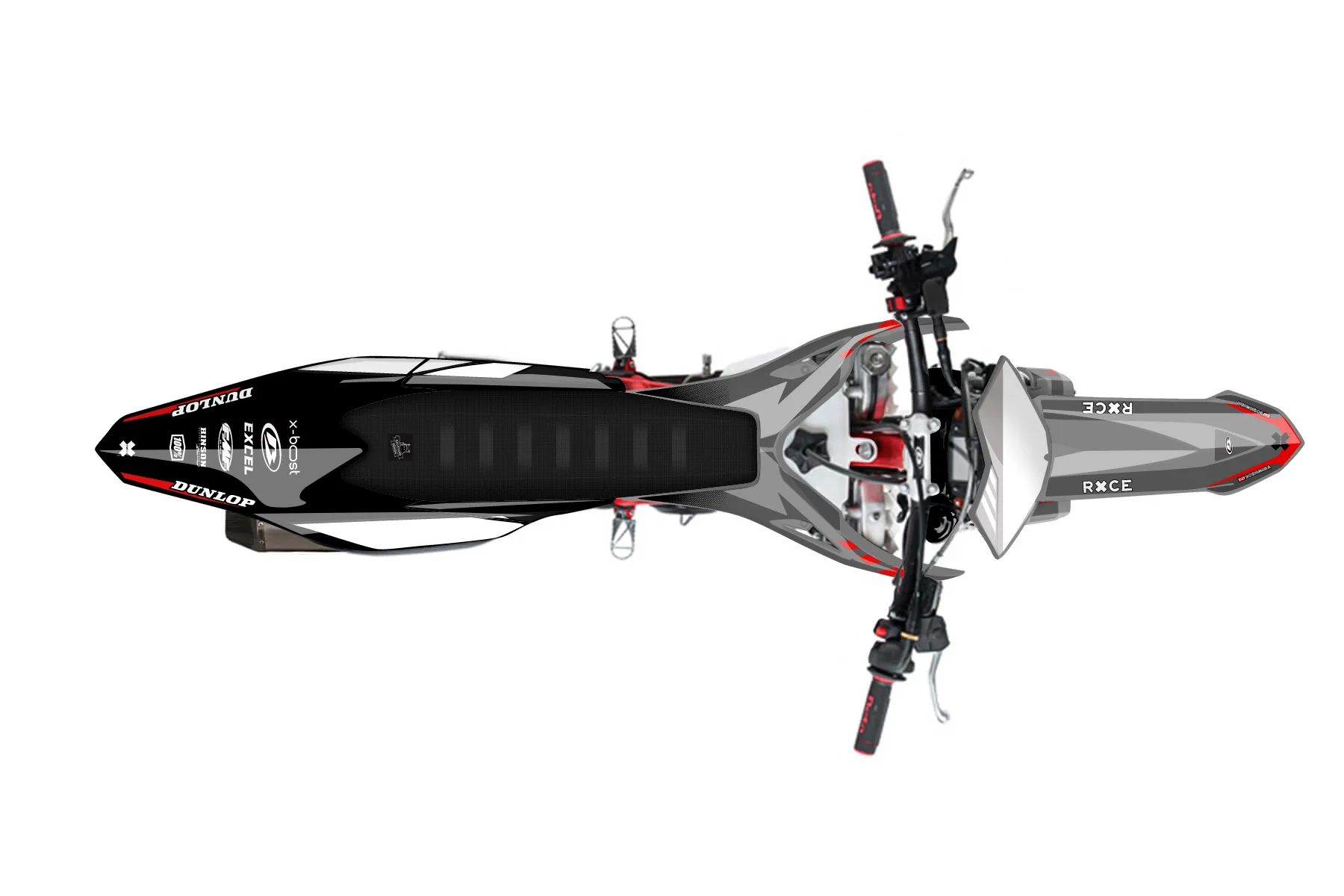 «CustomDesign» — готовый комплект графики серии Maverick для Beta Enduro Graphic Kit Beta RR 350 2023. В комплекте: графика на бак и боковые облицовки, крылья (переднее и заднее), передний щиток, номерные таблички, защита вилки. Материал: ПВХ-винил 80 мкр с холодной ламинацией 300 мкр, общая толщина 380 мкр; покрытие глянцевое или матовое на выбор. Устойчив к UV-излучению, воде, бензину и мойке высокого давления. Клей акриловый на сольвентной основе — постоянный, для гибких пластиков. На простых поверхностях монтируется без нагрева; для сложных изгибов рекомендуем фен. Этот пресет можно заказать как есть или взять за основу в конструкторе: поменять цвета, добавить стартовый номер и свой бренд. Производство — 3–5 рабочих дней, доставка по России СДЭКом или Почтой, по СНГ — курьерскими службами.