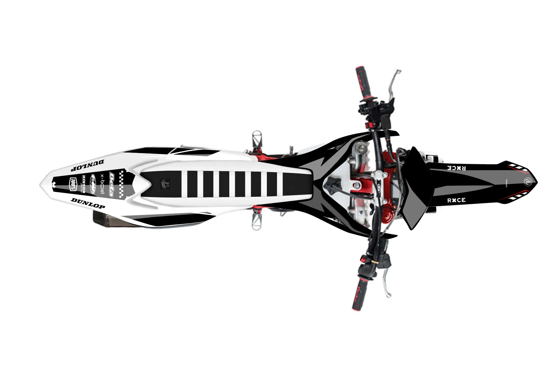 «Dude» — готовый комплект графики серии Maverick для Beta Enduro Graphic Kit Beta RR 350 2023. В комплекте: графика на бак и боковые облицовки, крылья (переднее и заднее), передний щиток, номерные таблички, защита вилки. Материал: ПВХ-винил 80 мкр с холодной ламинацией 300 мкр, общая толщина 380 мкр; покрытие глянцевое или матовое на выбор. Устойчив к UV-излучению, воде, бензину и мойке высокого давления. Клей акриловый на сольвентной основе — постоянный, для гибких пластиков. На простых поверхностях монтируется без нагрева; для сложных изгибов рекомендуем фен. Этот пресет можно заказать как есть или взять за основу в конструкторе: поменять цвета, добавить стартовый номер и свой бренд. Производство — 3–5 рабочих дней, доставка по России СДЭКом или Почтой, по СНГ — курьерскими службами.