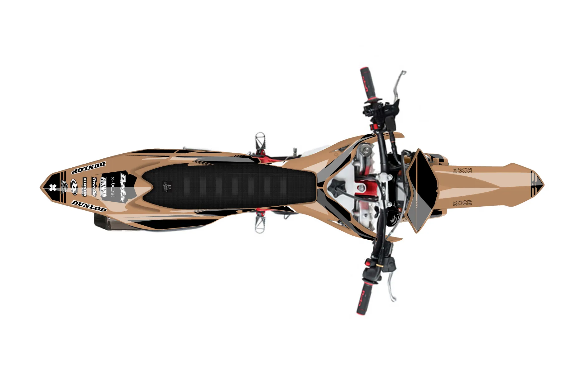 «Club» — готовый комплект графики серии Untucked для Beta Enduro Graphic Kit Beta RR 350 2023. В комплекте: графика на бак и боковые облицовки, крылья (переднее и заднее), передний щиток, номерные таблички, защита вилки. Материал: ПВХ-винил 80 мкр с холодной ламинацией 300 мкр, общая толщина 380 мкр; покрытие глянцевое или матовое на выбор. Устойчив к UV-излучению, воде, бензину и мойке высокого давления. Клей акриловый на сольвентной основе — постоянный, для гибких пластиков. На простых поверхностях монтируется без нагрева; для сложных изгибов рекомендуем фен. Этот пресет можно заказать как есть или взять за основу в конструкторе: поменять цвета, добавить стартовый номер и свой бренд. Производство — 3–5 рабочих дней, доставка по России СДЭКом или Почтой, по СНГ — курьерскими службами.