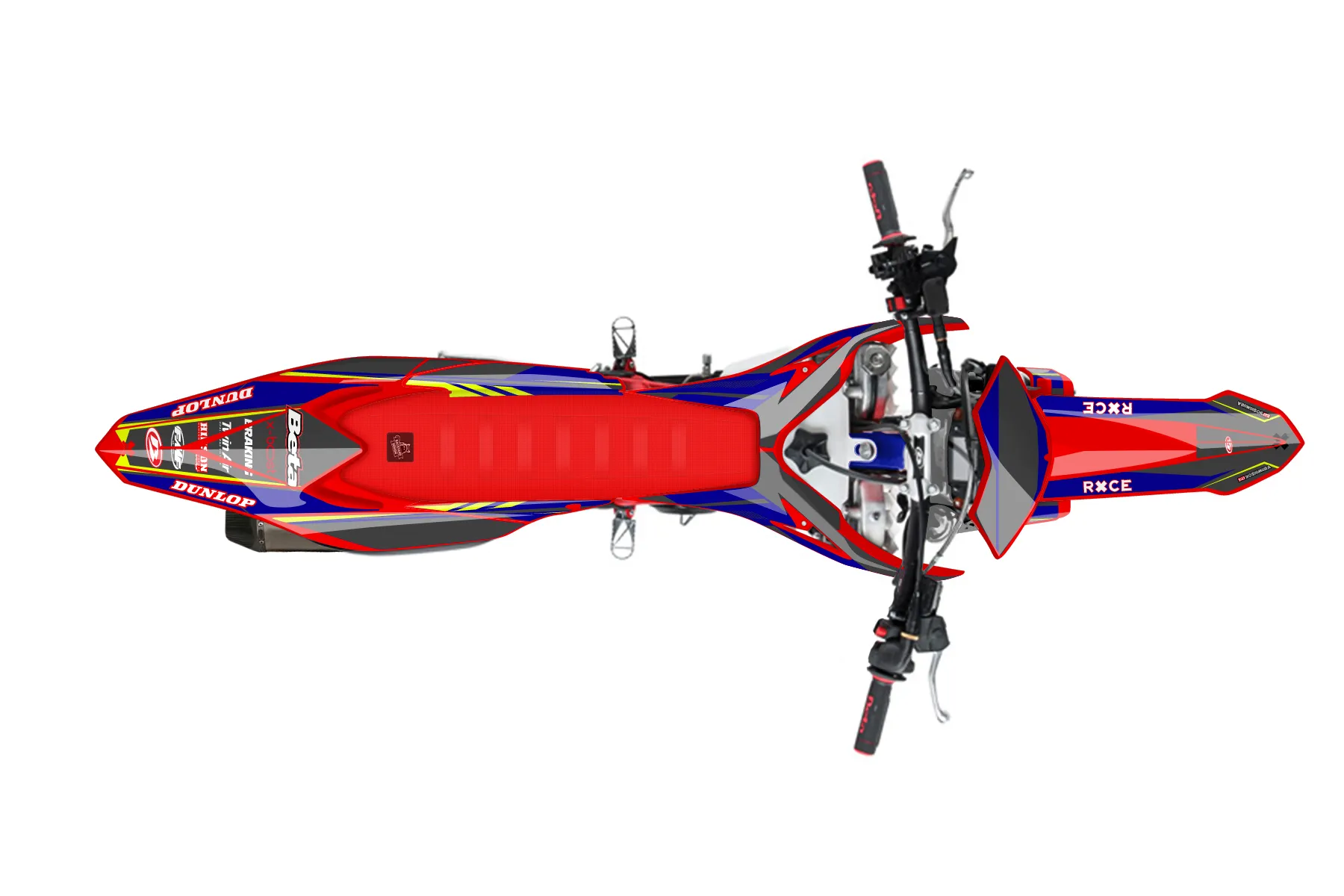 «graphic concept» — готовый комплект графики серии Maverick для Beta Enduro Graphic Kit Beta RR 390 2019. В комплекте: графика на бак и боковые облицовки, крылья (переднее и заднее), передний щиток, номерные таблички, защита вилки. Материал: ПВХ-винил 80 мкр с холодной ламинацией 300 мкр, общая толщина 380 мкр; покрытие глянцевое или матовое на выбор. Устойчив к UV-излучению, воде, бензину и мойке высокого давления. Клей акриловый на сольвентной основе — постоянный, для гибких пластиков. На простых поверхностях монтируется без нагрева; для сложных изгибов рекомендуем фен. Этот пресет можно заказать как есть или взять за основу в конструкторе: поменять цвета, добавить стартовый номер и свой бренд. Производство — 3–5 рабочих дней, доставка по России СДЭКом или Почтой, по СНГ — курьерскими службами.