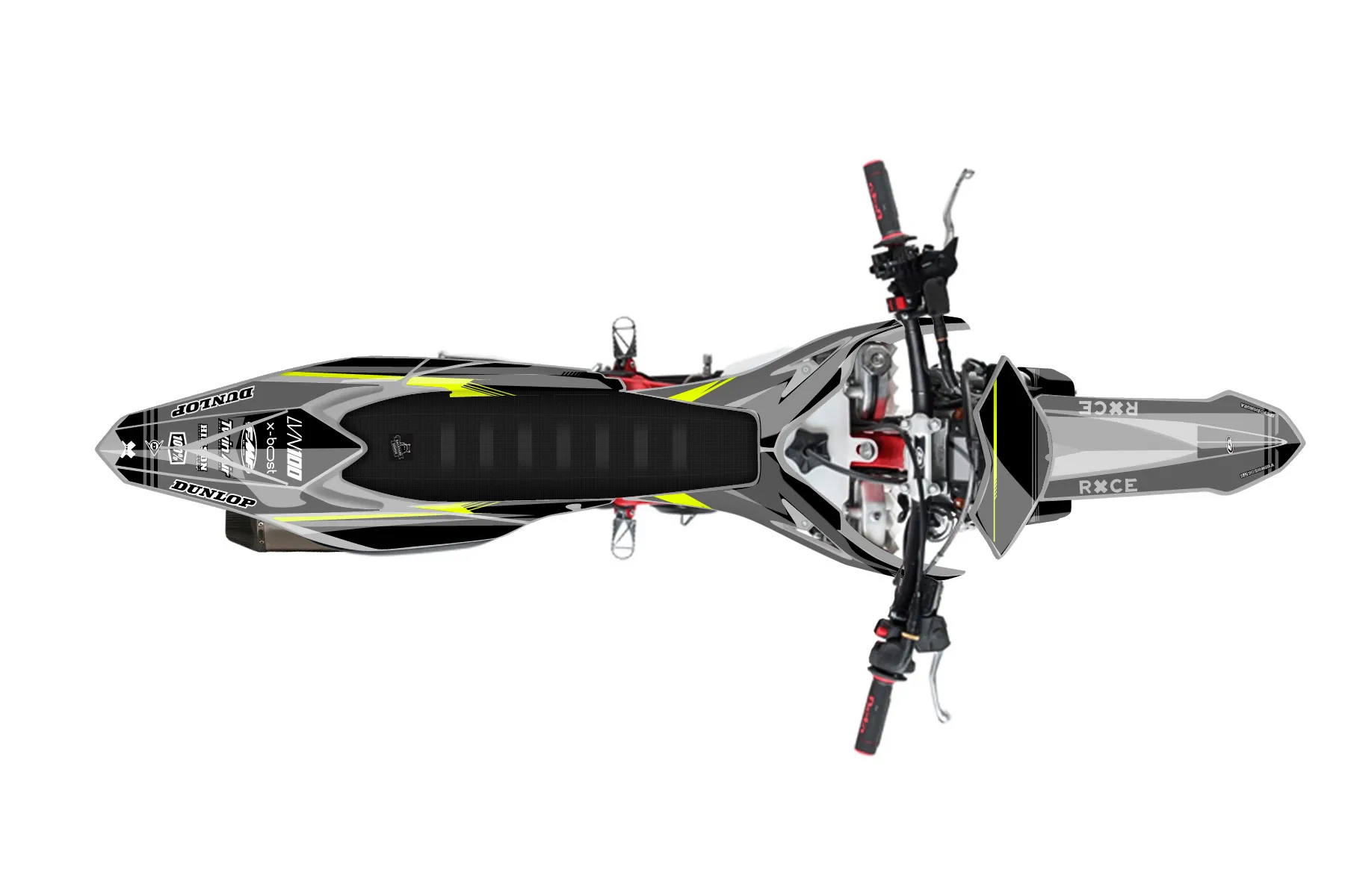 «Ride Neon» — готовый комплект графики серии Untucked для Beta Enduro Graphic Kit Beta RR 390 2021. В комплекте: графика на бак и боковые облицовки, крылья (переднее и заднее), передний щиток, номерные таблички, защита вилки. Материал: ПВХ-винил 80 мкр с холодной ламинацией 300 мкр, общая толщина 380 мкр; покрытие глянцевое или матовое на выбор. Устойчив к UV-излучению, воде, бензину и мойке высокого давления. Клей акриловый на сольвентной основе — постоянный, для гибких пластиков. На простых поверхностях монтируется без нагрева; для сложных изгибов рекомендуем фен. Этот пресет можно заказать как есть или взять за основу в конструкторе: поменять цвета, добавить стартовый номер и свой бренд. Производство — 3–5 рабочих дней, доставка по России СДЭКом или Почтой, по СНГ — курьерскими службами.