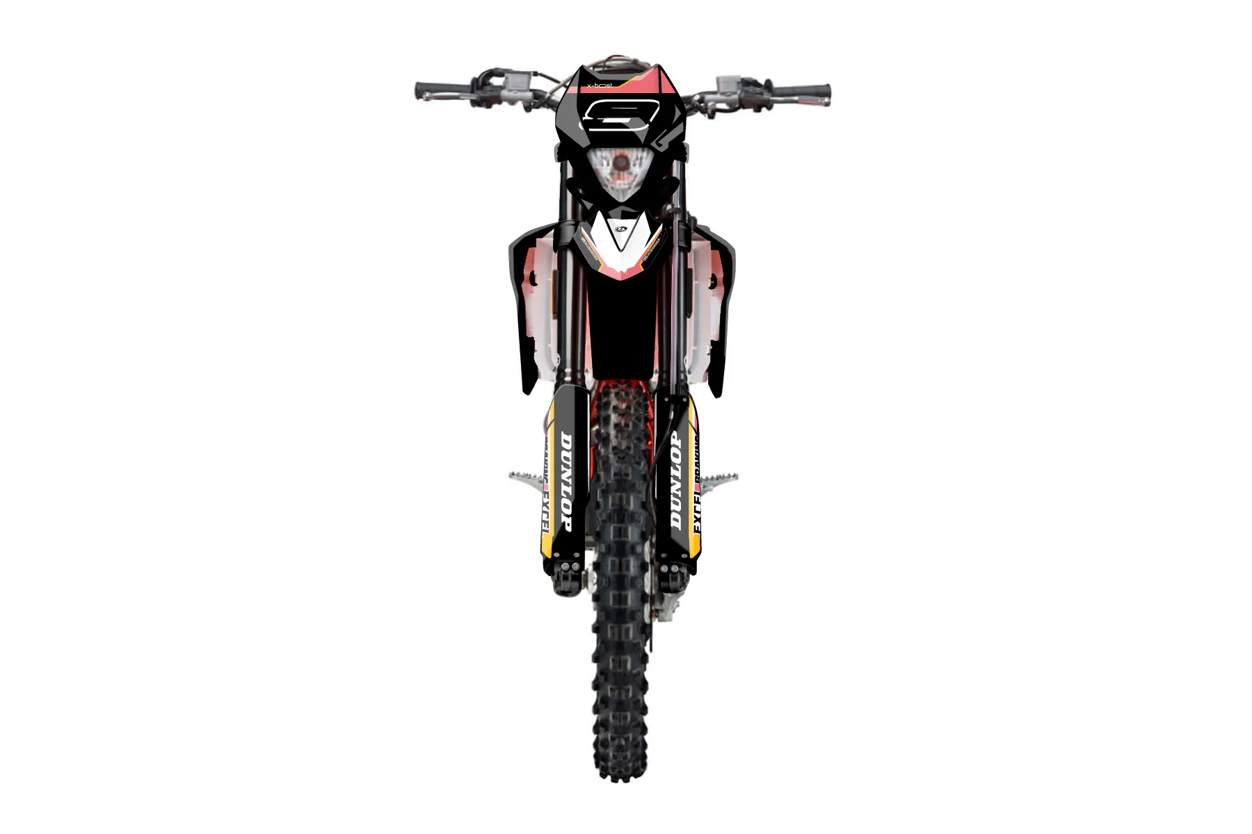 «Charge» — готовый комплект графики серии Maverick для Beta Enduro Graphic Kit Beta RR 390 2023. В комплекте: графика на бак и боковые облицовки, крылья (переднее и заднее), передний щиток, номерные таблички, защита вилки. Материал: ПВХ-винил 80 мкр с холодной ламинацией 300 мкр, общая толщина 380 мкр; покрытие глянцевое или матовое на выбор. Устойчив к UV-излучению, воде, бензину и мойке высокого давления. Клей акриловый на сольвентной основе — постоянный, для гибких пластиков. На простых поверхностях монтируется без нагрева; для сложных изгибов рекомендуем фен. Этот пресет можно заказать как есть или взять за основу в конструкторе: поменять цвета, добавить стартовый номер и свой бренд. Производство — 3–5 рабочих дней, доставка по России СДЭКом или Почтой, по СНГ — курьерскими службами.