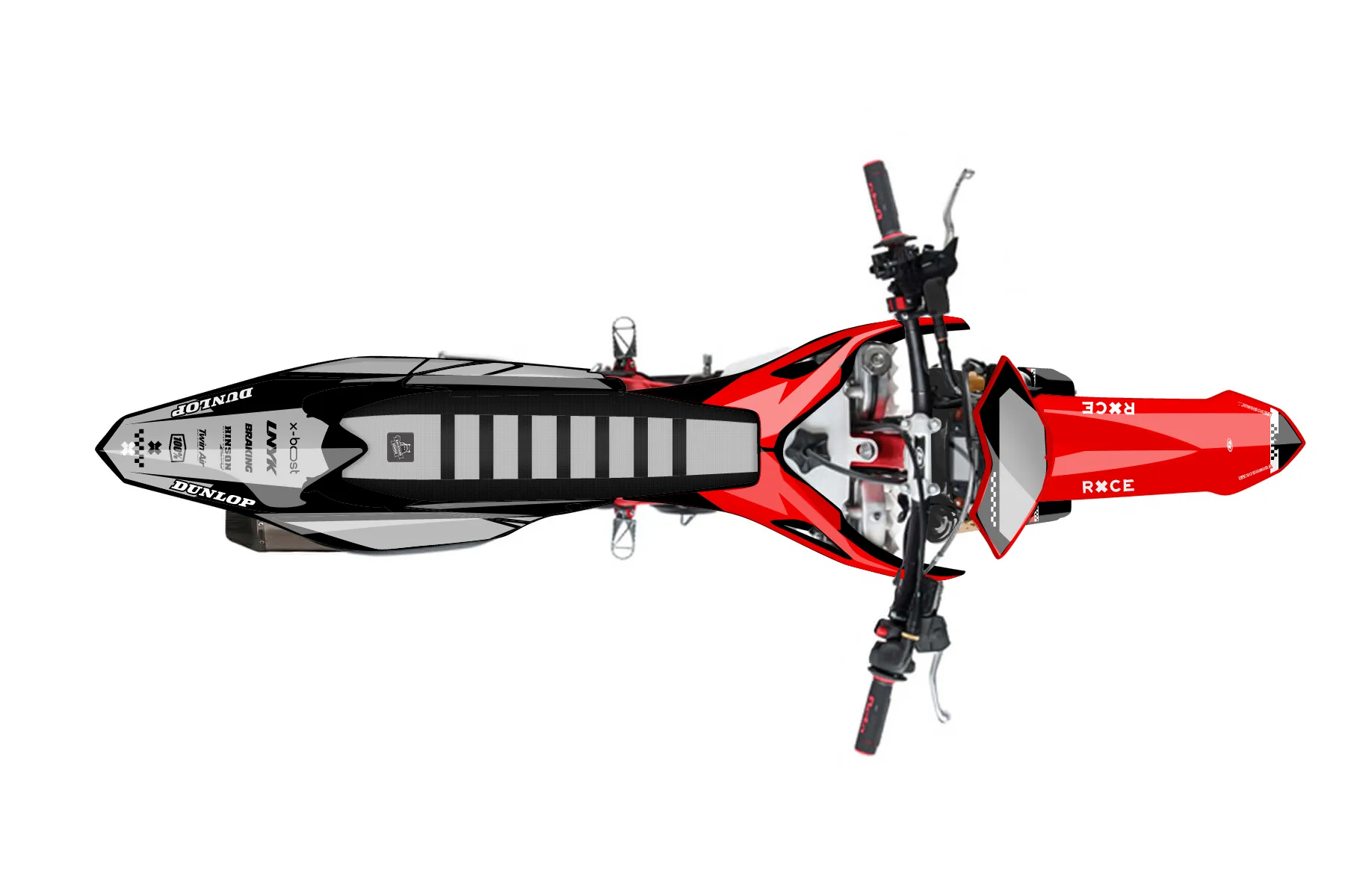 «Label» — готовый комплект графики серии Staple для Beta Enduro Graphic Kit Beta RR 390 2023. В комплекте: графика на бак и боковые облицовки, крылья (переднее и заднее), передний щиток, номерные таблички, защита вилки. Материал: ПВХ-винил 80 мкр с холодной ламинацией 300 мкр, общая толщина 380 мкр; покрытие глянцевое или матовое на выбор. Устойчив к UV-излучению, воде, бензину и мойке высокого давления. Клей акриловый на сольвентной основе — постоянный, для гибких пластиков. На простых поверхностях монтируется без нагрева; для сложных изгибов рекомендуем фен. Этот пресет можно заказать как есть или взять за основу в конструкторе: поменять цвета, добавить стартовый номер и свой бренд. Производство — 3–5 рабочих дней, доставка по России СДЭКом или Почтой, по СНГ — курьерскими службами.