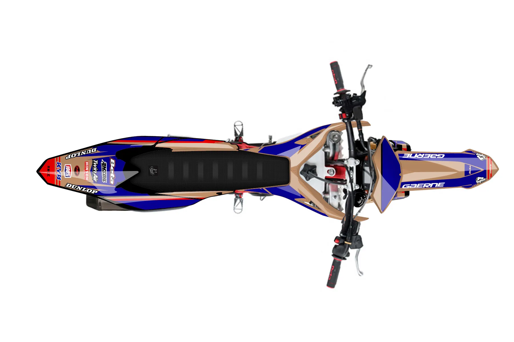 «dads» — готовый комплект графики серии Untucked для Beta Enduro Graphic Kit Beta RR 390 2023. В комплекте: графика на бак и боковые облицовки, крылья (переднее и заднее), передний щиток, номерные таблички, защита вилки. Материал: ПВХ-винил 80 мкр с холодной ламинацией 300 мкр, общая толщина 380 мкр; покрытие глянцевое или матовое на выбор. Устойчив к UV-излучению, воде, бензину и мойке высокого давления. Клей акриловый на сольвентной основе — постоянный, для гибких пластиков. На простых поверхностях монтируется без нагрева; для сложных изгибов рекомендуем фен. Этот пресет можно заказать как есть или взять за основу в конструкторе: поменять цвета, добавить стартовый номер и свой бренд. Производство — 3–5 рабочих дней, доставка по России СДЭКом или Почтой, по СНГ — курьерскими службами.