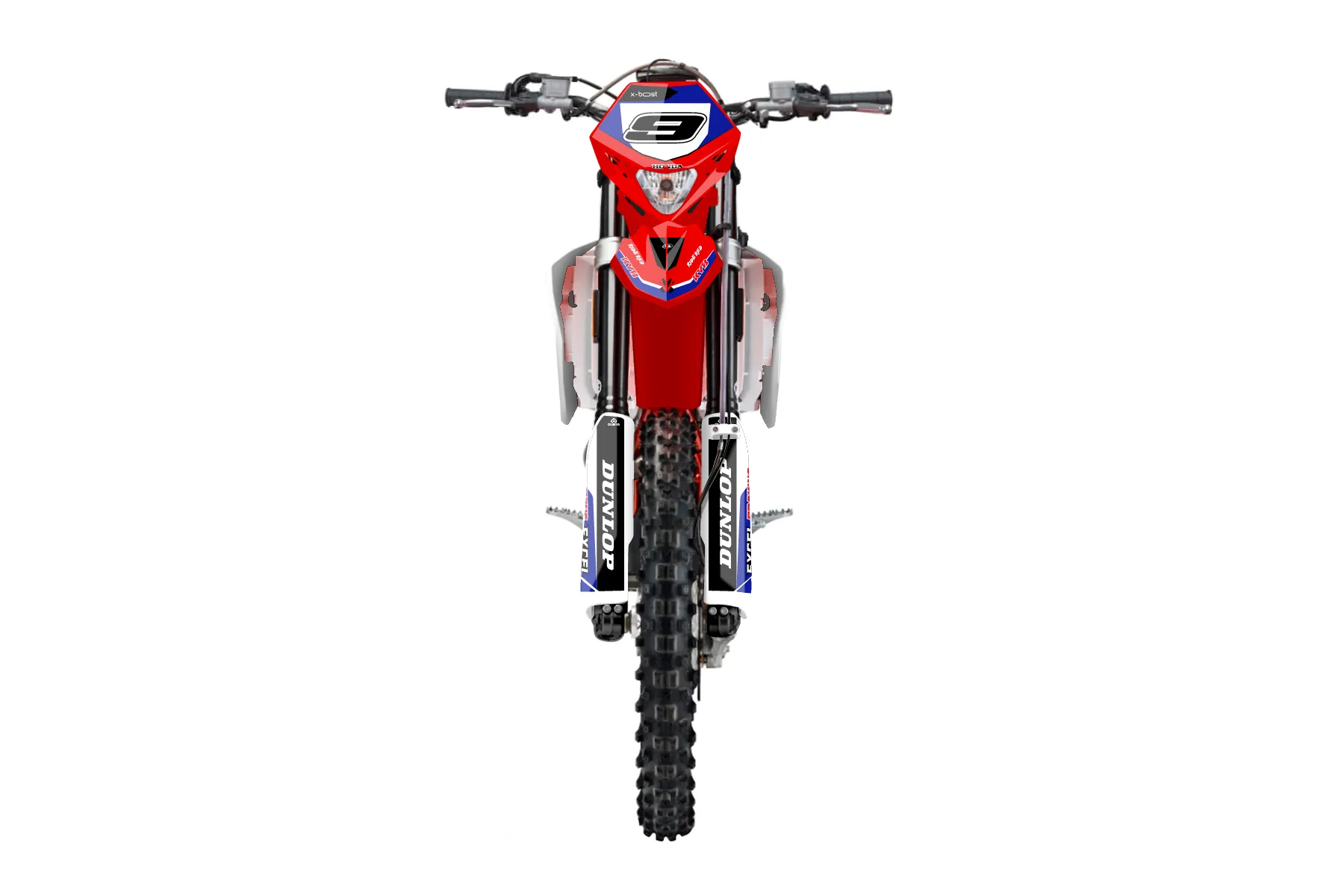 «Dew» — готовый комплект графики серии Flow для Beta Enduro Graphic Kit Beta RR 430 2019. В комплекте: графика на бак и боковые облицовки, крылья (переднее и заднее), передний щиток, номерные таблички, защита вилки. Материал: ПВХ-винил 80 мкр с холодной ламинацией 300 мкр, общая толщина 380 мкр; покрытие глянцевое или матовое на выбор. Устойчив к UV-излучению, воде, бензину и мойке высокого давления. Клей акриловый на сольвентной основе — постоянный, для гибких пластиков. На простых поверхностях монтируется без нагрева; для сложных изгибов рекомендуем фен. Этот пресет можно заказать как есть или взять за основу в конструкторе: поменять цвета, добавить стартовый номер и свой бренд. Производство — 3–5 рабочих дней, доставка по России СДЭКом или Почтой, по СНГ — курьерскими службами.