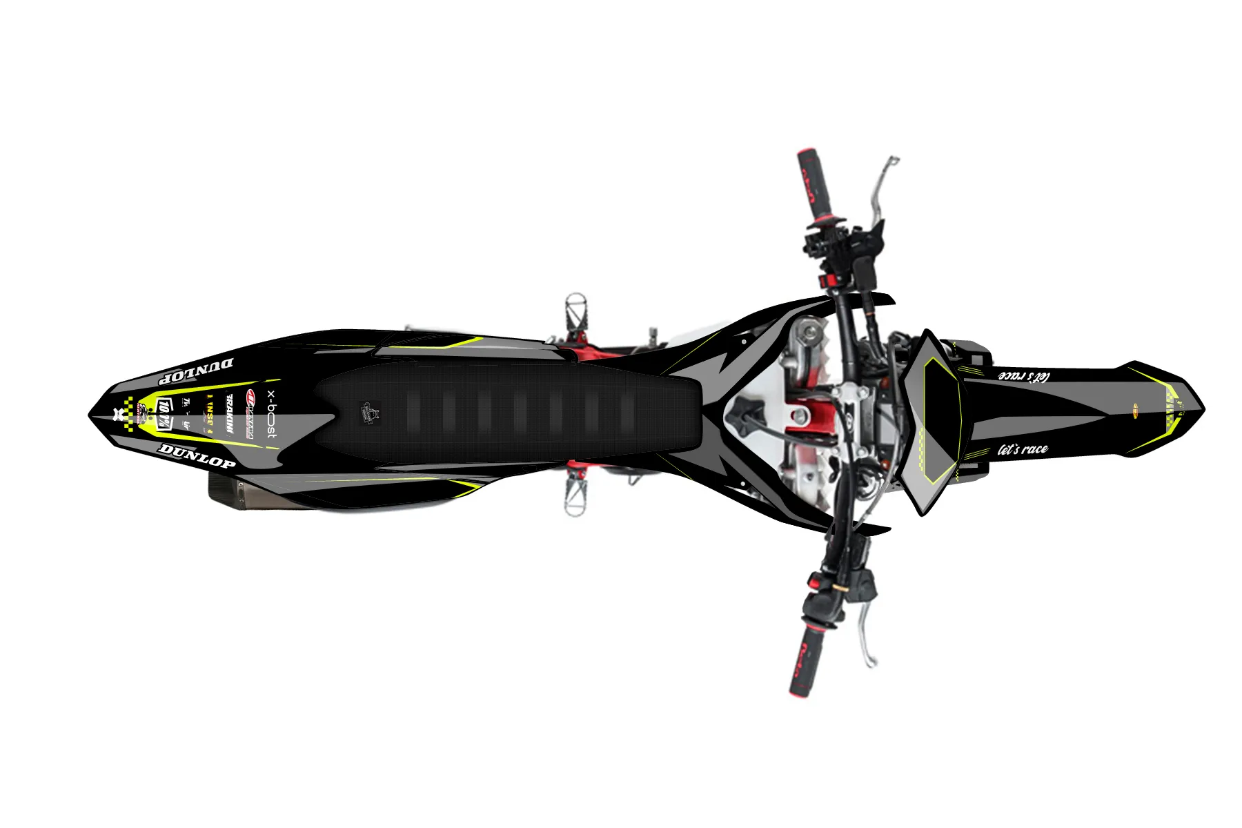 «Bright Neon» — готовый комплект графики серии Staple для Beta Enduro Graphic Kit Beta RR 430 2019. В комплекте: графика на бак и боковые облицовки, крылья (переднее и заднее), передний щиток, номерные таблички, защита вилки. Материал: ПВХ-винил 80 мкр с холодной ламинацией 300 мкр, общая толщина 380 мкр; покрытие глянцевое или матовое на выбор. Устойчив к UV-излучению, воде, бензину и мойке высокого давления. Клей акриловый на сольвентной основе — постоянный, для гибких пластиков. На простых поверхностях монтируется без нагрева; для сложных изгибов рекомендуем фен. Этот пресет можно заказать как есть или взять за основу в конструкторе: поменять цвета, добавить стартовый номер и свой бренд. Производство — 3–5 рабочих дней, доставка по России СДЭКом или Почтой, по СНГ — курьерскими службами.