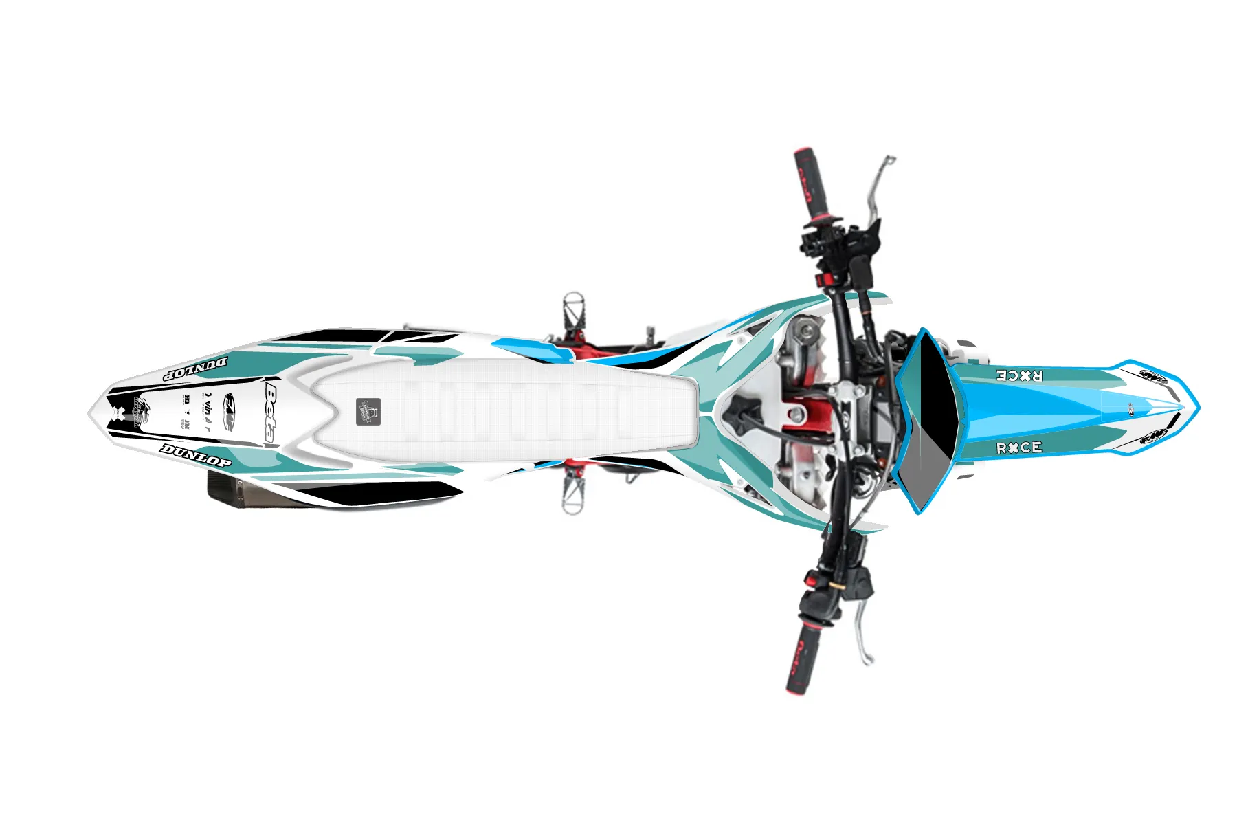 «Swirl» — готовый комплект графики серии Flow для Beta Enduro Graphic Kit Beta RR 430 2021. В комплекте: графика на бак и боковые облицовки, крылья (переднее и заднее), передний щиток, номерные таблички, защита вилки. Материал: ПВХ-винил 80 мкр с холодной ламинацией 300 мкр, общая толщина 380 мкр; покрытие глянцевое или матовое на выбор. Устойчив к UV-излучению, воде, бензину и мойке высокого давления. Клей акриловый на сольвентной основе — постоянный, для гибких пластиков. На простых поверхностях монтируется без нагрева; для сложных изгибов рекомендуем фен. Этот пресет можно заказать как есть или взять за основу в конструкторе: поменять цвета, добавить стартовый номер и свой бренд. Производство — 3–5 рабочих дней, доставка по России СДЭКом или Почтой, по СНГ — курьерскими службами.