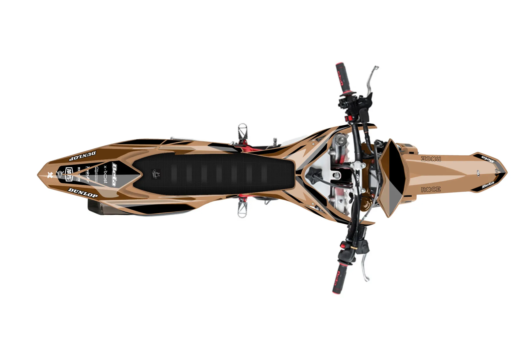 «Unique» — готовый комплект графики серии Flow для Beta Enduro Graphic Kit Beta RR 430 2021. В комплекте: графика на бак и боковые облицовки, крылья (переднее и заднее), передний щиток, номерные таблички, защита вилки. Материал: ПВХ-винил 80 мкр с холодной ламинацией 300 мкр, общая толщина 380 мкр; покрытие глянцевое или матовое на выбор. Устойчив к UV-излучению, воде, бензину и мойке высокого давления. Клей акриловый на сольвентной основе — постоянный, для гибких пластиков. На простых поверхностях монтируется без нагрева; для сложных изгибов рекомендуем фен. Этот пресет можно заказать как есть или взять за основу в конструкторе: поменять цвета, добавить стартовый номер и свой бренд. Производство — 3–5 рабочих дней, доставка по России СДЭКом или Почтой, по СНГ — курьерскими службами.