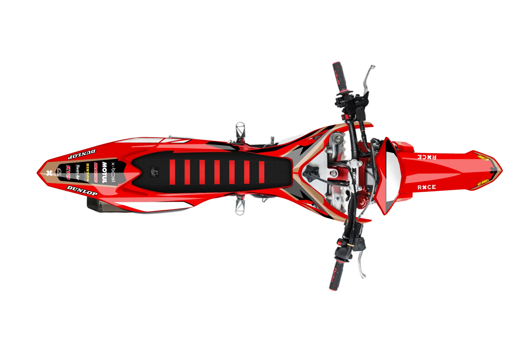 «Beyond» — готовый комплект графики серии Flow для Beta Enduro Graphic Kit Beta RR 430 2022. В комплекте: графика на бак и боковые облицовки, крылья (переднее и заднее), передний щиток, номерные таблички, защита вилки. Материал: ПВХ-винил 80 мкр с холодной ламинацией 300 мкр, общая толщина 380 мкр; покрытие глянцевое или матовое на выбор. Устойчив к UV-излучению, воде, бензину и мойке высокого давления. Клей акриловый на сольвентной основе — постоянный, для гибких пластиков. На простых поверхностях монтируется без нагрева; для сложных изгибов рекомендуем фен. Этот пресет можно заказать как есть или взять за основу в конструкторе: поменять цвета, добавить стартовый номер и свой бренд. Производство — 3–5 рабочих дней, доставка по России СДЭКом или Почтой, по СНГ — курьерскими службами.