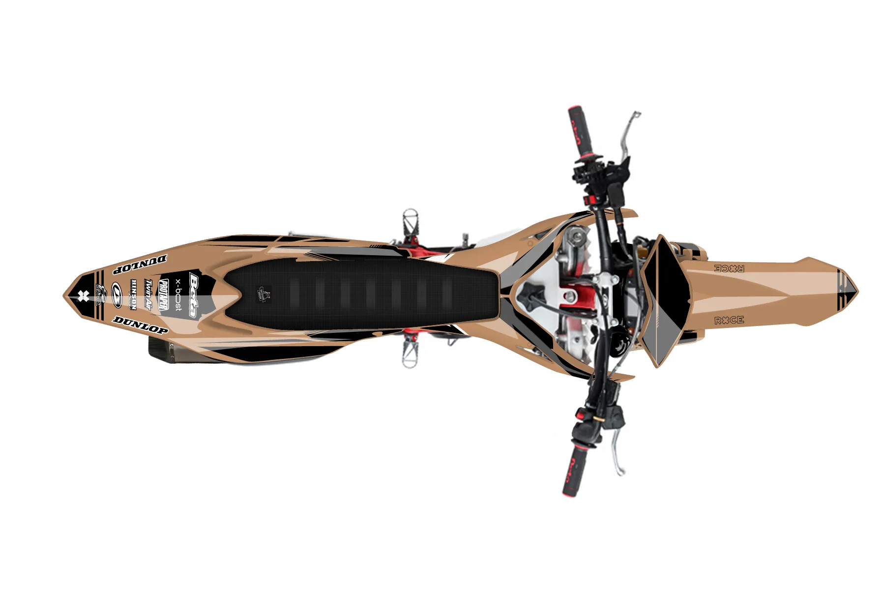 «Club» — готовый комплект графики серии Untucked для Beta Enduro Graphic Kit Beta RR 430 2022. В комплекте: графика на бак и боковые облицовки, крылья (переднее и заднее), передний щиток, номерные таблички, защита вилки. Материал: ПВХ-винил 80 мкр с холодной ламинацией 300 мкр, общая толщина 380 мкр; покрытие глянцевое или матовое на выбор. Устойчив к UV-излучению, воде, бензину и мойке высокого давления. Клей акриловый на сольвентной основе — постоянный, для гибких пластиков. На простых поверхностях монтируется без нагрева; для сложных изгибов рекомендуем фен. Этот пресет можно заказать как есть или взять за основу в конструкторе: поменять цвета, добавить стартовый номер и свой бренд. Производство — 3–5 рабочих дней, доставка по России СДЭКом или Почтой, по СНГ — курьерскими службами.