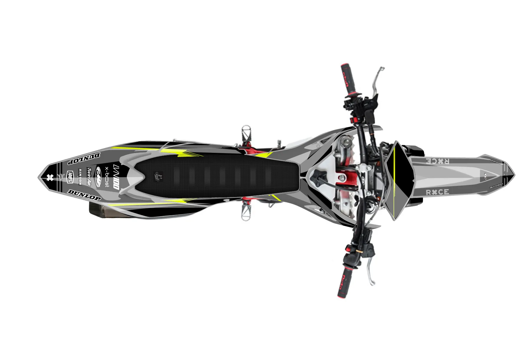 «Ride Neon» — готовый комплект графики серии Untucked для Beta Enduro Graphic Kit Beta RR 430 2022. В комплекте: графика на бак и боковые облицовки, крылья (переднее и заднее), передний щиток, номерные таблички, защита вилки. Материал: ПВХ-винил 80 мкр с холодной ламинацией 300 мкр, общая толщина 380 мкр; покрытие глянцевое или матовое на выбор. Устойчив к UV-излучению, воде, бензину и мойке высокого давления. Клей акриловый на сольвентной основе — постоянный, для гибких пластиков. На простых поверхностях монтируется без нагрева; для сложных изгибов рекомендуем фен. Этот пресет можно заказать как есть или взять за основу в конструкторе: поменять цвета, добавить стартовый номер и свой бренд. Производство — 3–5 рабочих дней, доставка по России СДЭКом или Почтой, по СНГ — курьерскими службами.