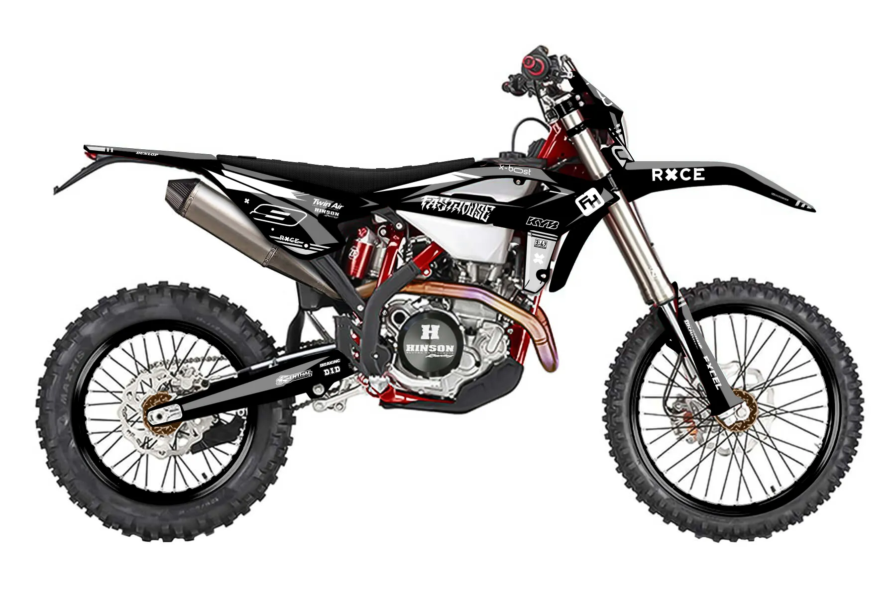 «Speedhouse» — готовый комплект графики серии Untucked для Beta Enduro Graphic Kit Beta RR 430 2023. В комплекте: графика на бак и боковые облицовки, крылья (переднее и заднее), передний щиток, номерные таблички, защита вилки. Материал: ПВХ-винил 80 мкр с холодной ламинацией 300 мкр, общая толщина 380 мкр; покрытие глянцевое или матовое на выбор. Устойчив к UV-излучению, воде, бензину и мойке высокого давления. Клей акриловый на сольвентной основе — постоянный, для гибких пластиков. На простых поверхностях монтируется без нагрева; для сложных изгибов рекомендуем фен. Этот пресет можно заказать как есть или взять за основу в конструкторе: поменять цвета, добавить стартовый номер и свой бренд. Производство — 3–5 рабочих дней, доставка по России СДЭКом или Почтой, по СНГ — курьерскими службами.