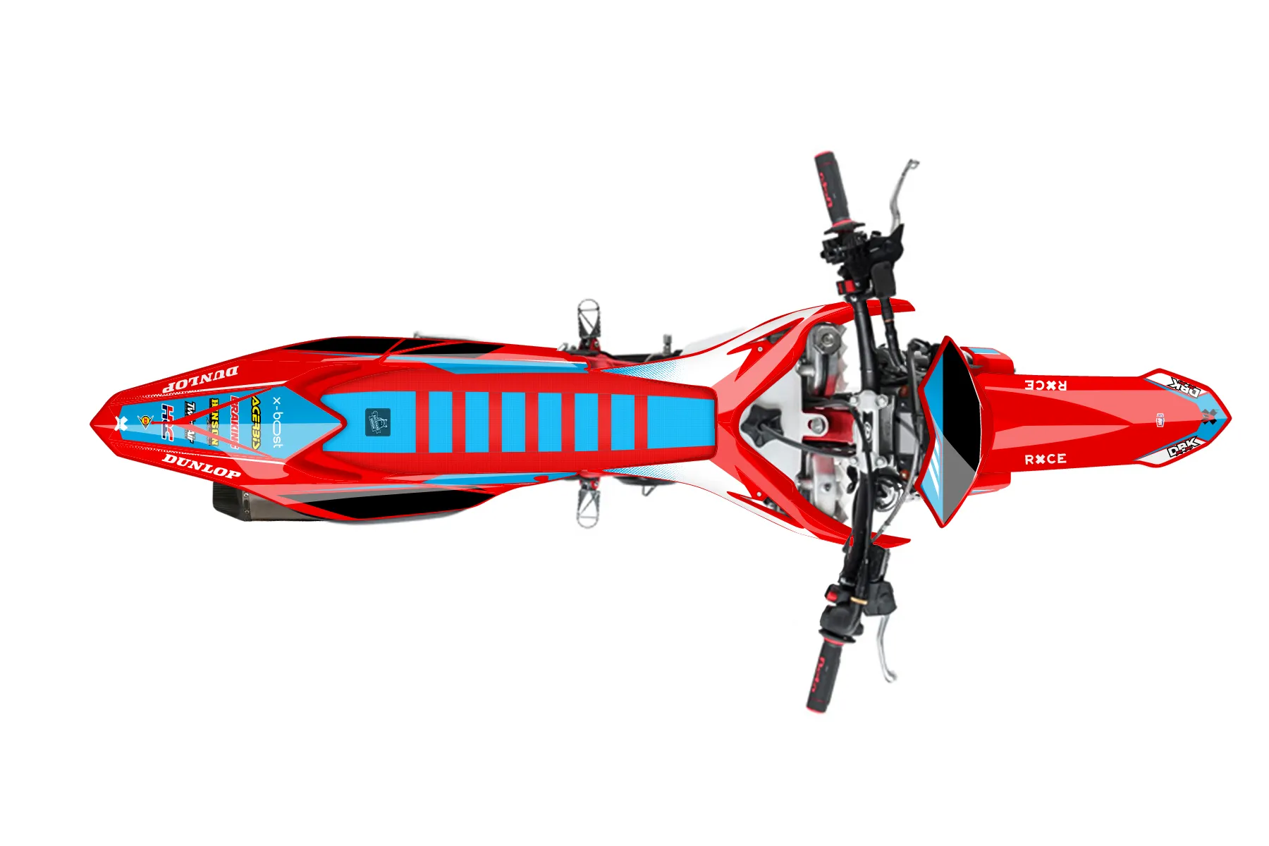«Showtime» — готовый комплект графики серии Maverick для Beta Enduro Graphic Kit Beta 480 2019. В комплекте: графика на бак и боковые облицовки, крылья (переднее и заднее), передний щиток, номерные таблички, защита вилки. Материал: ПВХ-винил 80 мкр с холодной ламинацией 300 мкр, общая толщина 380 мкр; покрытие глянцевое или матовое на выбор. Устойчив к UV-излучению, воде, бензину и мойке высокого давления. Клей акриловый на сольвентной основе — постоянный, для гибких пластиков. На простых поверхностях монтируется без нагрева; для сложных изгибов рекомендуем фен. Этот пресет можно заказать как есть или взять за основу в конструкторе: поменять цвета, добавить стартовый номер и свой бренд. Производство — 3–5 рабочих дней, доставка по России СДЭКом или Почтой, по СНГ — курьерскими службами.