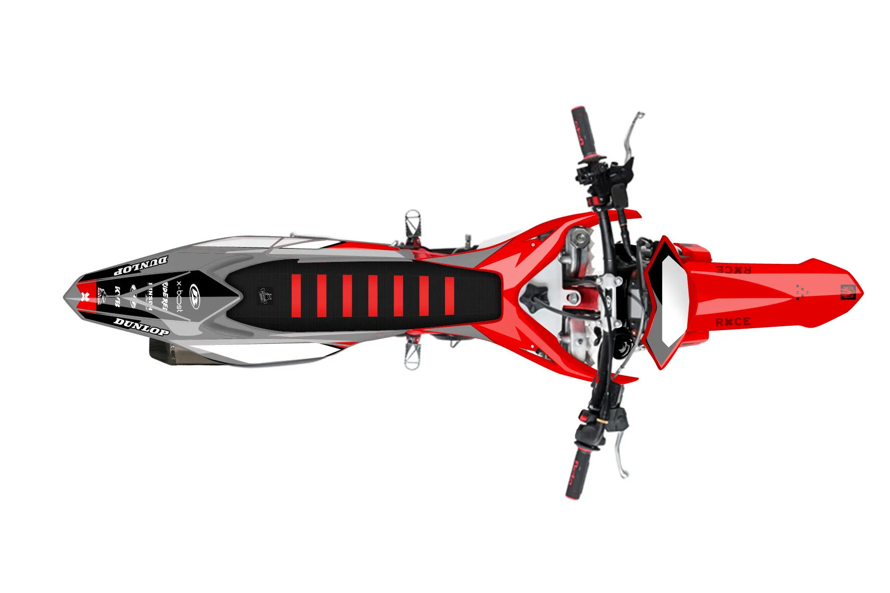 «Warp» — готовый комплект графики серии Staple для Beta Enduro Graphic Kit Beta 480 2019. В комплекте: графика на бак и боковые облицовки, крылья (переднее и заднее), передний щиток, номерные таблички, защита вилки. Материал: ПВХ-винил 80 мкр с холодной ламинацией 300 мкр, общая толщина 380 мкр; покрытие глянцевое или матовое на выбор. Устойчив к UV-излучению, воде, бензину и мойке высокого давления. Клей акриловый на сольвентной основе — постоянный, для гибких пластиков. На простых поверхностях монтируется без нагрева; для сложных изгибов рекомендуем фен. Этот пресет можно заказать как есть или взять за основу в конструкторе: поменять цвета, добавить стартовый номер и свой бренд. Производство — 3–5 рабочих дней, доставка по России СДЭКом или Почтой, по СНГ — курьерскими службами.