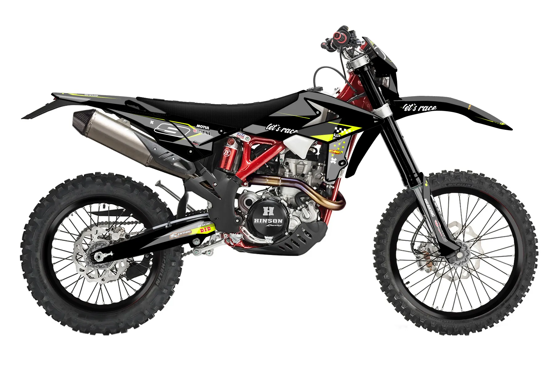 «Bright Neon» — готовый комплект графики серии Staple для Beta Enduro Graphic Kit Beta 480 2021. В комплекте: графика на бак и боковые облицовки, крылья (переднее и заднее), передний щиток, номерные таблички, защита вилки. Материал: ПВХ-винил 80 мкр с холодной ламинацией 300 мкр, общая толщина 380 мкр; покрытие глянцевое или матовое на выбор. Устойчив к UV-излучению, воде, бензину и мойке высокого давления. Клей акриловый на сольвентной основе — постоянный, для гибких пластиков. На простых поверхностях монтируется без нагрева; для сложных изгибов рекомендуем фен. Этот пресет можно заказать как есть или взять за основу в конструкторе: поменять цвета, добавить стартовый номер и свой бренд. Производство — 3–5 рабочих дней, доставка по России СДЭКом или Почтой, по СНГ — курьерскими службами.