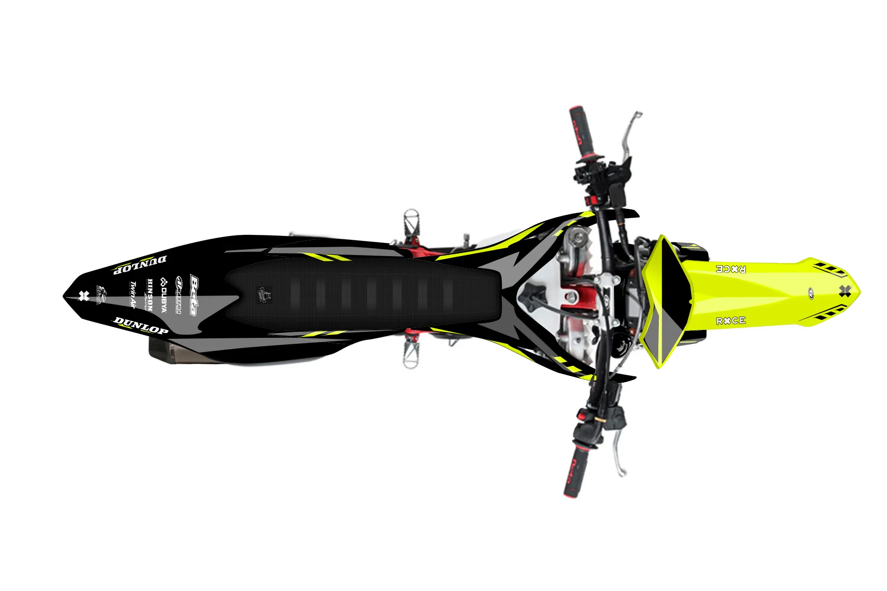 «Vivid Neon» — готовый комплект графики серии Maverick для Beta Enduro Graphic Kit Beta 480 2022. В комплекте: графика на бак и боковые облицовки, крылья (переднее и заднее), передний щиток, номерные таблички, защита вилки. Материал: ПВХ-винил 80 мкр с холодной ламинацией 300 мкр, общая толщина 380 мкр; покрытие глянцевое или матовое на выбор. Устойчив к UV-излучению, воде, бензину и мойке высокого давления. Клей акриловый на сольвентной основе — постоянный, для гибких пластиков. На простых поверхностях монтируется без нагрева; для сложных изгибов рекомендуем фен. Этот пресет можно заказать как есть или взять за основу в конструкторе: поменять цвета, добавить стартовый номер и свой бренд. Производство — 3–5 рабочих дней, доставка по России СДЭКом или Почтой, по СНГ — курьерскими службами.