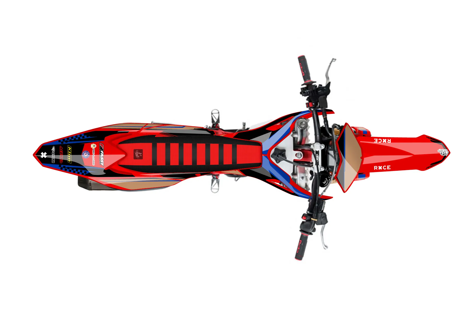 «Beta 500» — готовый комплект графики серии Untucked для Beta Enduro Graphic Kit Beta 480 2023. В комплекте: графика на бак и боковые облицовки, крылья (переднее и заднее), передний щиток, номерные таблички, защита вилки. Материал: ПВХ-винил 80 мкр с холодной ламинацией 300 мкр, общая толщина 380 мкр; покрытие глянцевое или матовое на выбор. Устойчив к UV-излучению, воде, бензину и мойке высокого давления. Клей акриловый на сольвентной основе — постоянный, для гибких пластиков. На простых поверхностях монтируется без нагрева; для сложных изгибов рекомендуем фен. Этот пресет можно заказать как есть или взять за основу в конструкторе: поменять цвета, добавить стартовый номер и свой бренд. Производство — 3–5 рабочих дней, доставка по России СДЭКом или Почтой, по СНГ — курьерскими службами.